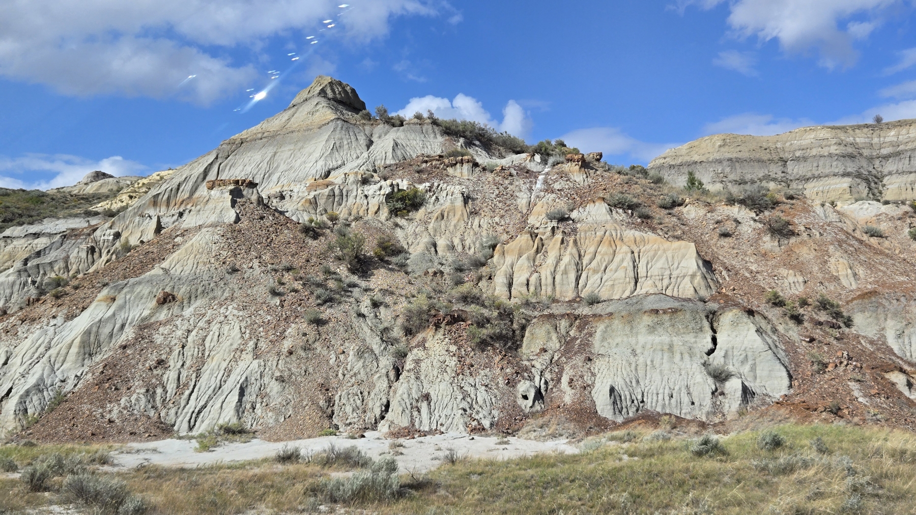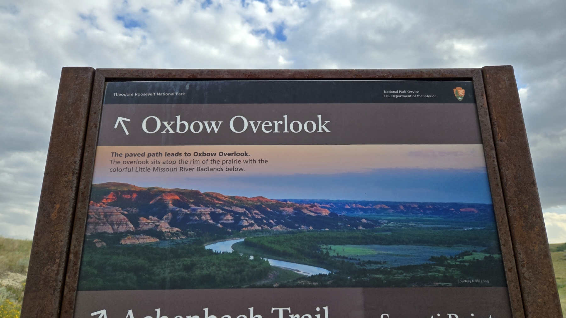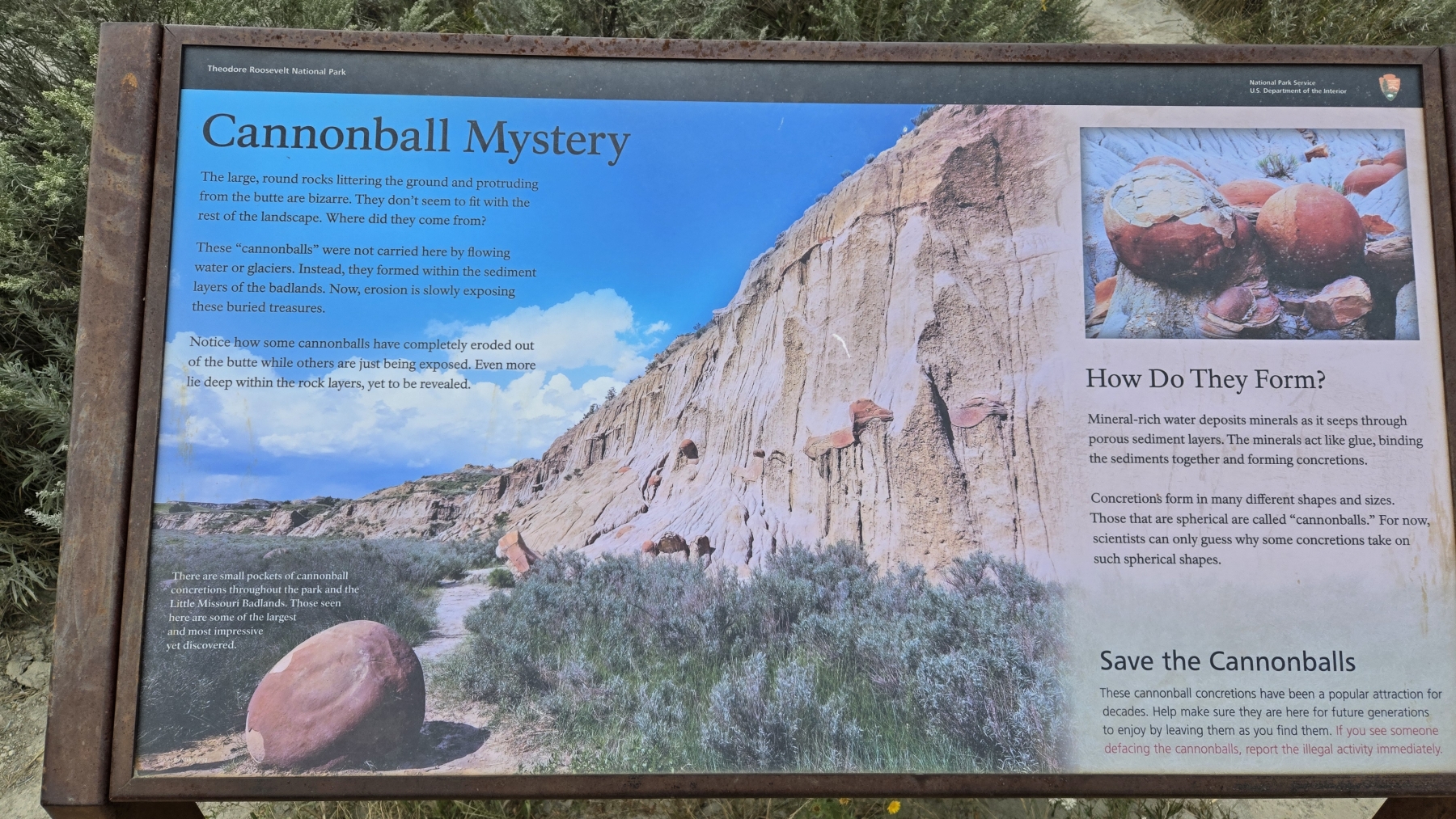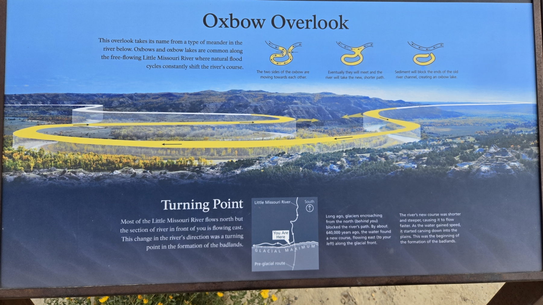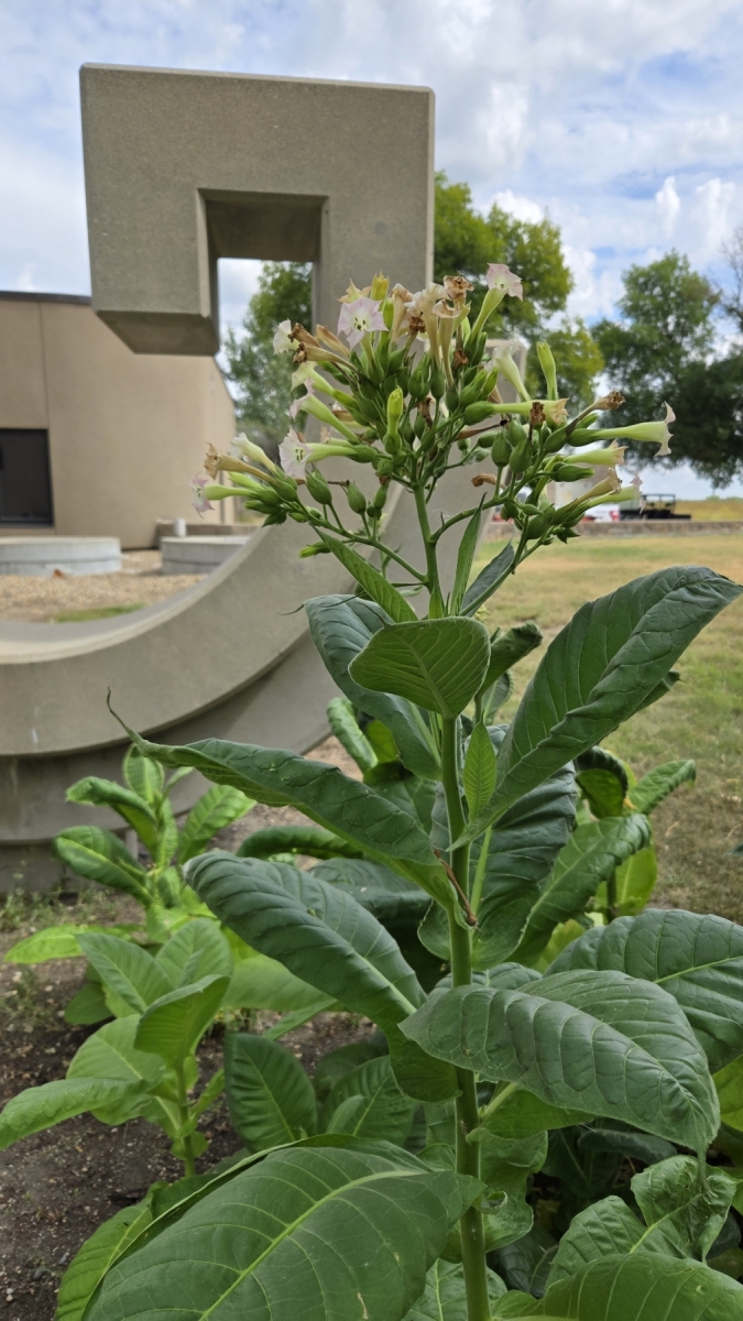 We soon had to head out, picking up the trailer in its storage location in the campground and taking out a speed limit sign in the process (whoops). We stayed one night on the eastern side of North Dakota and then made it to western North Dakota the next day. We stopped at the Knife River Indian Villages National Historic Site on the way there to check things out. We stopped at the visitor center but didn't do any hiking or driving around -- Margot was still healing, and our car was in the trailer. We saw a tobacco plant, which was interesting as we hadn't seen them before.