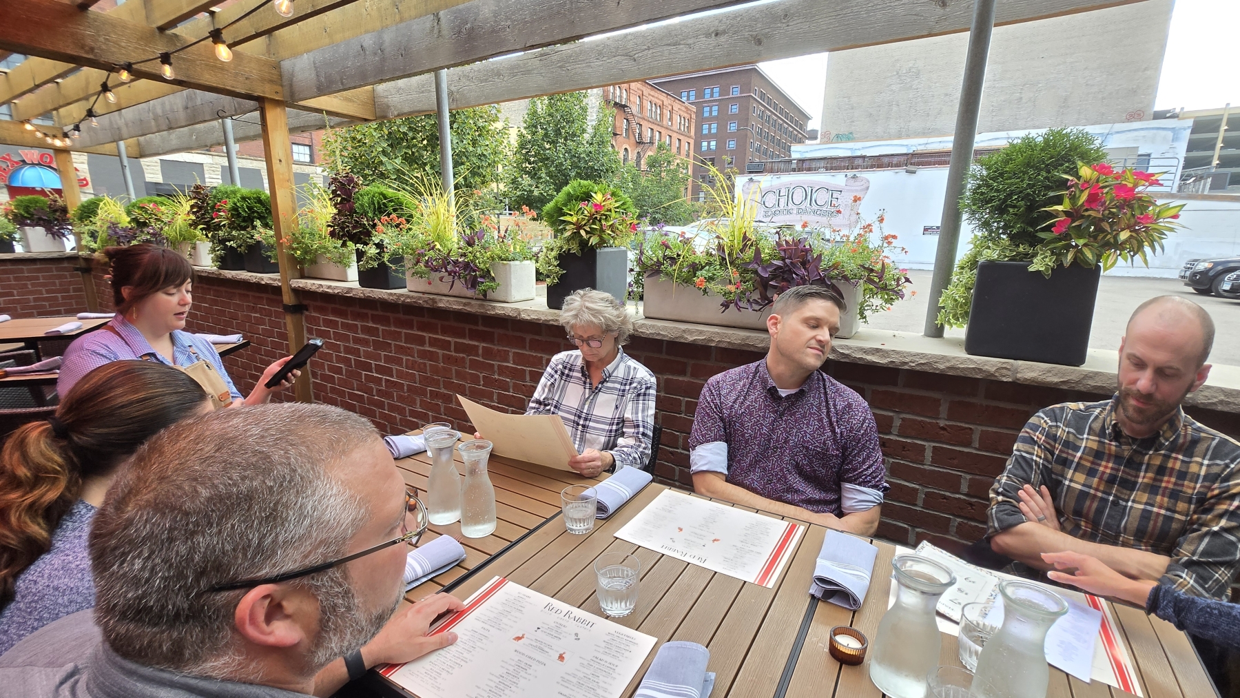 We had a fun idea for her birthday -- to go to the Mall of America (MOA) to see what it's all about. To start the day, we met with some of Monica's friends from work for brunch at Cedar + Stone, Urban Table in the Marriott attached to the MOA. Sometimes hotel restaurants aren't that great, but this one was awesome. Everyone enjoyed their food.
