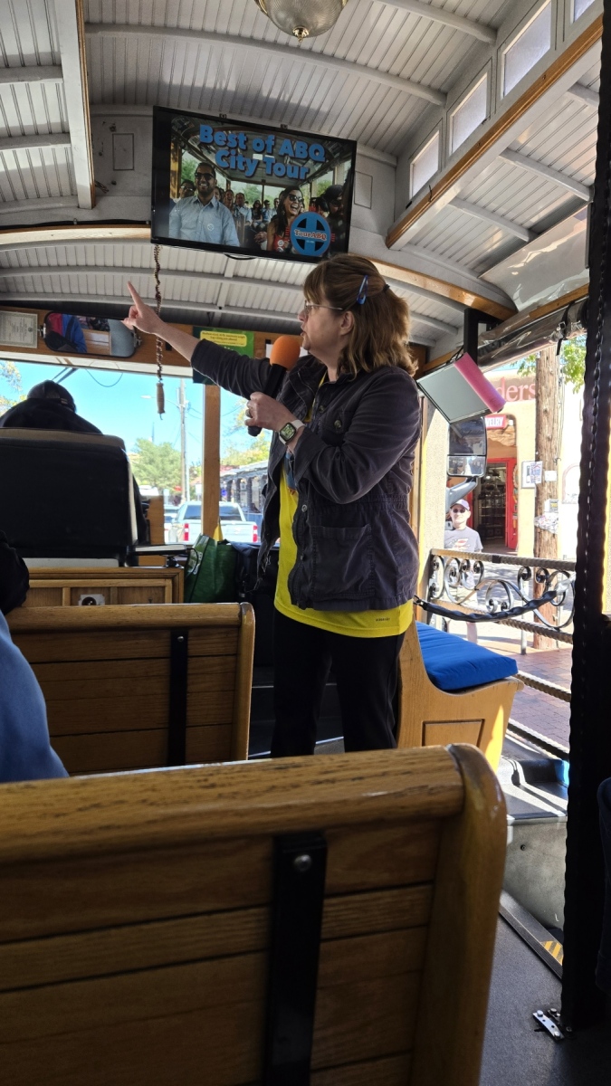 Monica had planned to take some paid time off to visit the parks with Margot, and she didn't cancel it. We used one of the days to do the ABQ Trolley Co trolley around the town. We try to do these tours to learn more about where we're staying whenever we can, and this was an especially good tour. We're both from Denver, and ABQ is pretty comparable to the city in many ways. Denver is larger, and ABQ is more focused on art and the film industry. We kept comparing the two places, and we actually like ABQ a bit more.