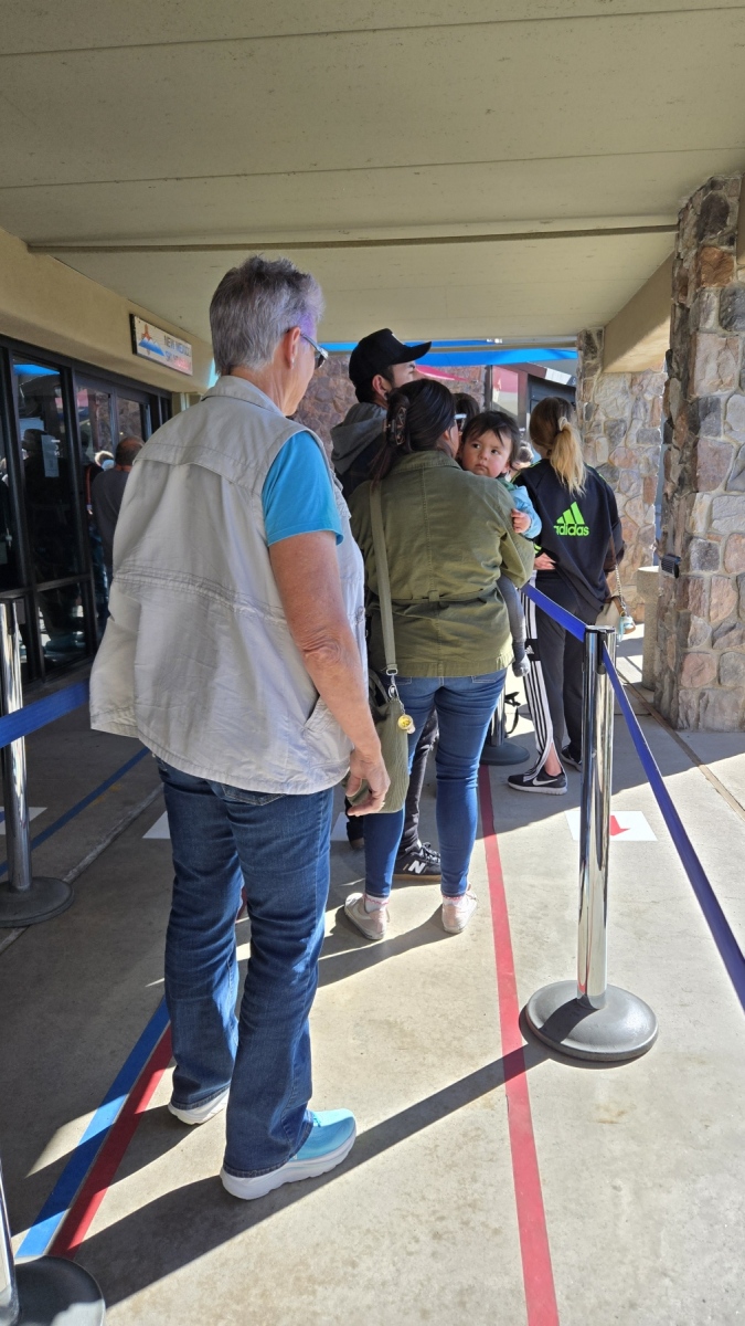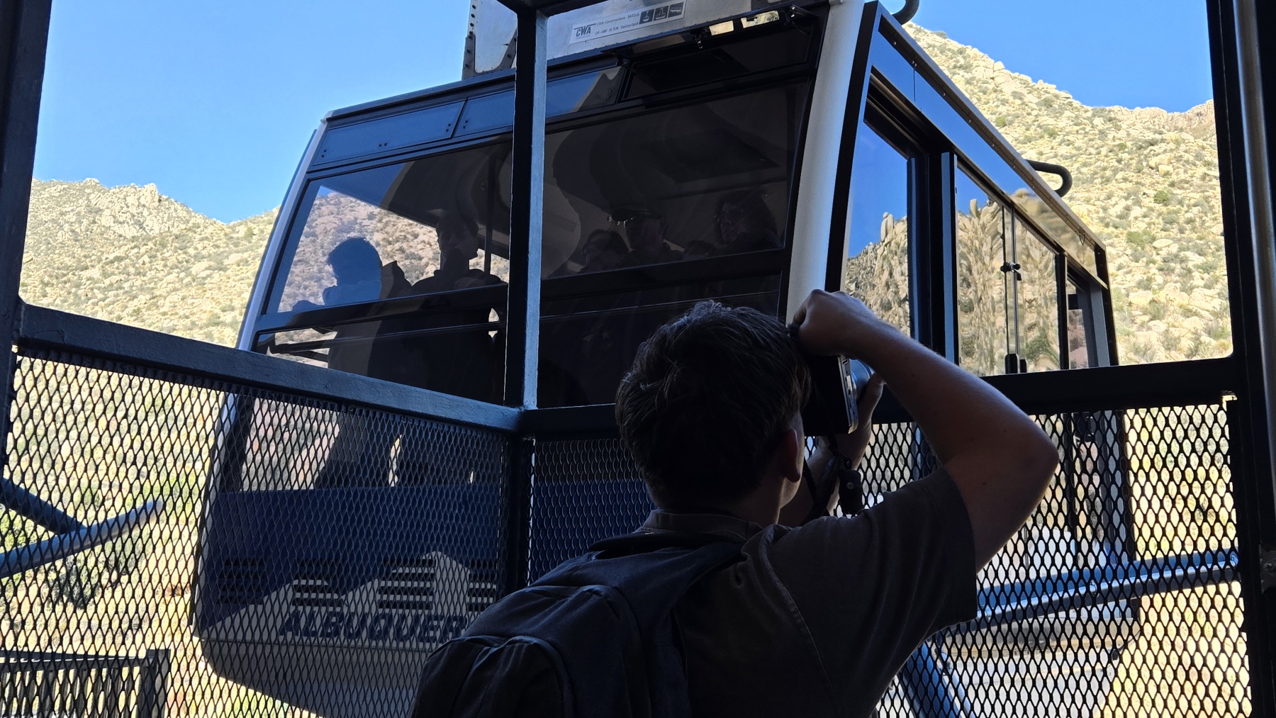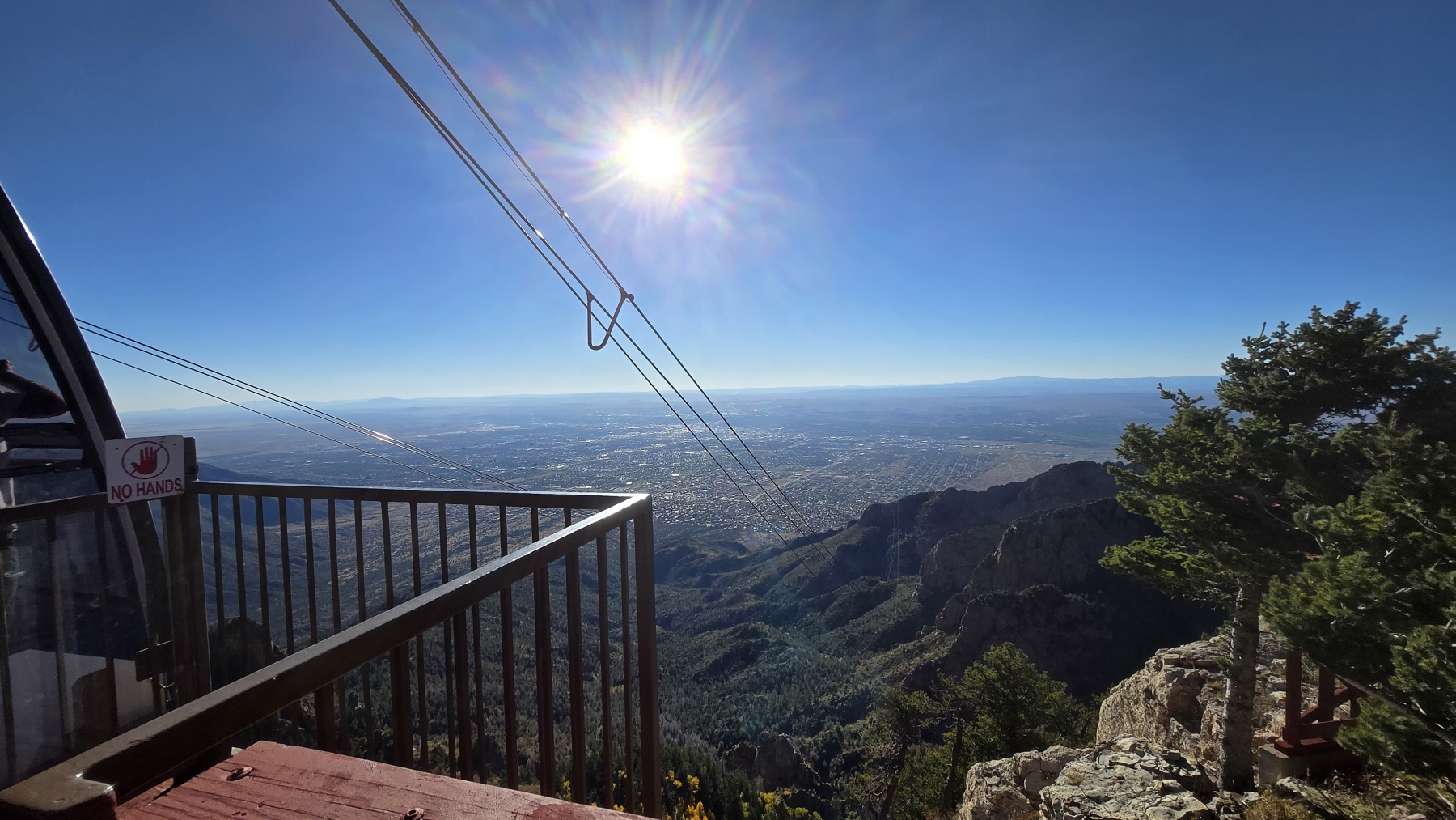 Sandia Peak had been looming over us during our stay, a lovely mountain range that turns pink at sunset. We picked up some tickets and took the Sandia Peak Aerial Tramway up to the top. The line at the bottom to get on the tram presented a long wait, but the view of the city was nice. We rode the tram up (so fun!), and the tram passing us on the way down waved as we waved back. The trip was a blast.