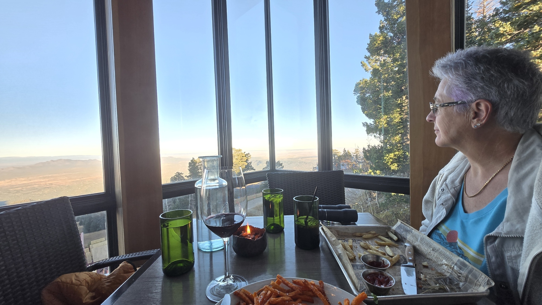 We were up on the mountain at the right time to get the best table at the TEN 3 restaurant. The food wasn't cheap by a long shot, but it was good. We watched the sunset, and it was gorgeous. There was a table next to us, and we struck up a few conversations with the couple over dinner. After we were all done eating, they joined us for a drink. It was so nice to meet wonderful people on the mountain. Even the server was a joy -- this was definitely one of the highlights of our ABQ stay (and there were so many highlights!).