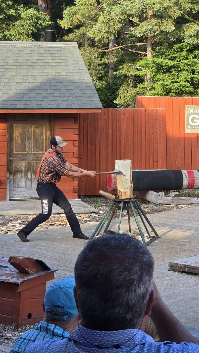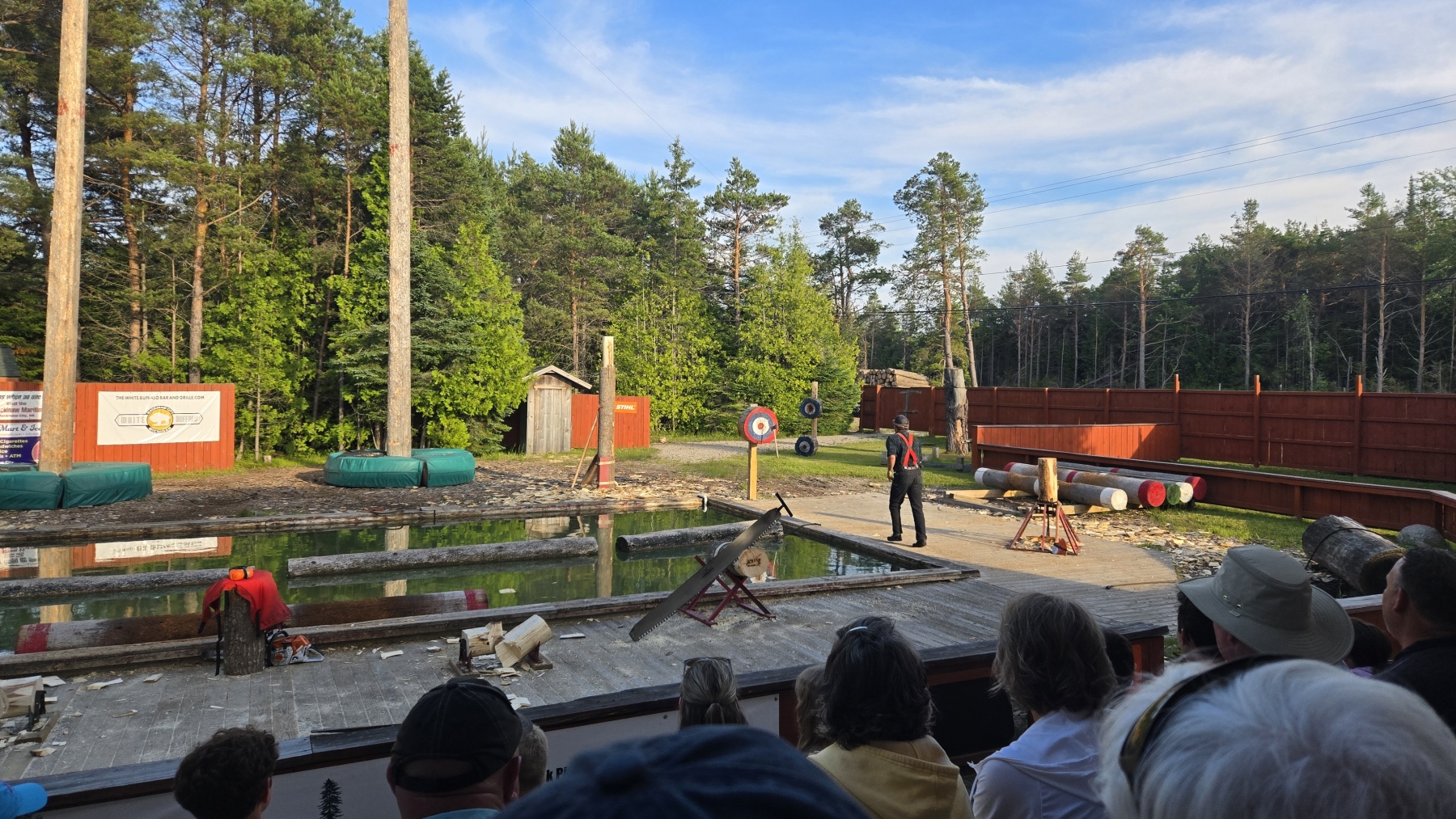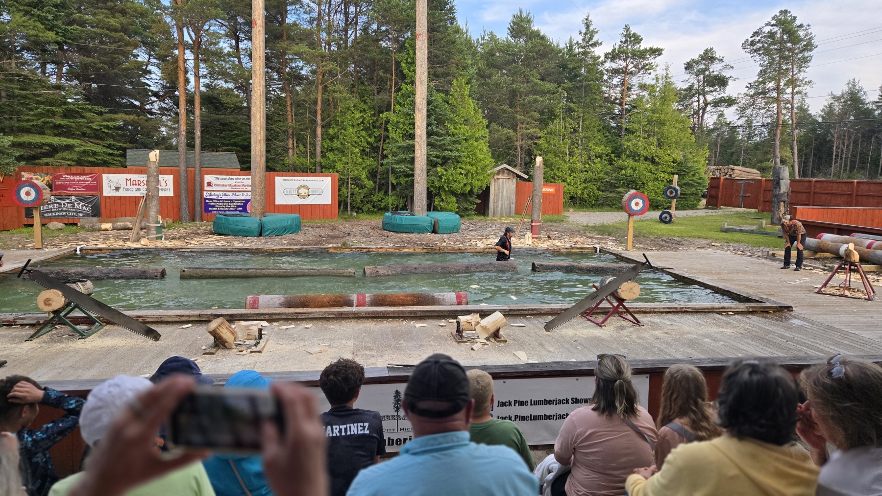 We are tourists at heart, though, so we loved the attractions. We went to the Jack Pine Lumberjack Show down the road and cheered with the kids and kids at heart as two lumberjacks competed. The jokes were corny, and it was a blast.