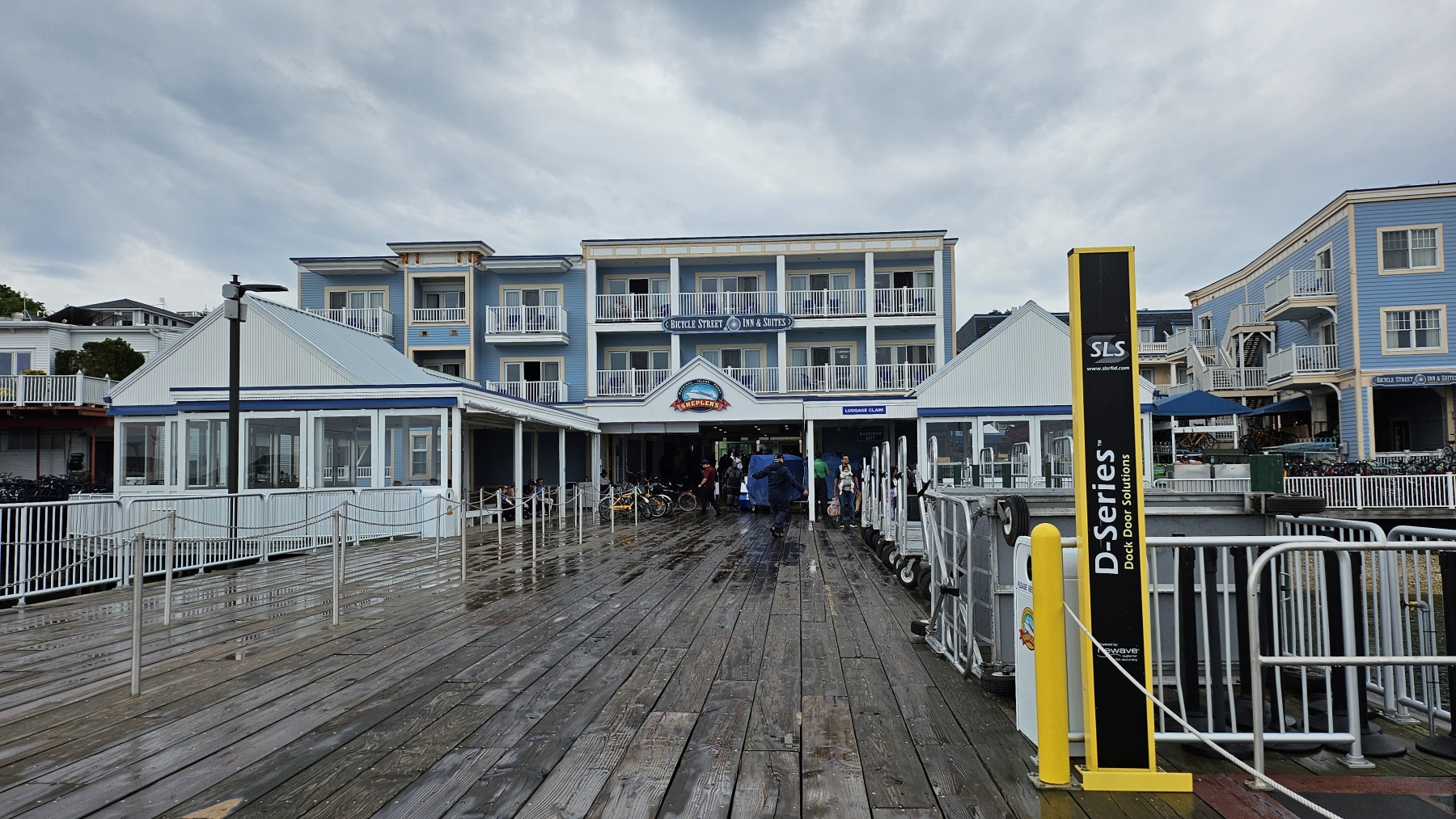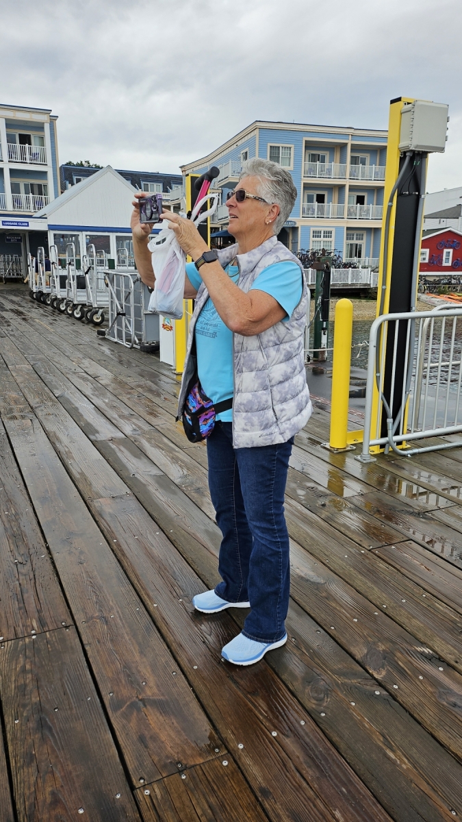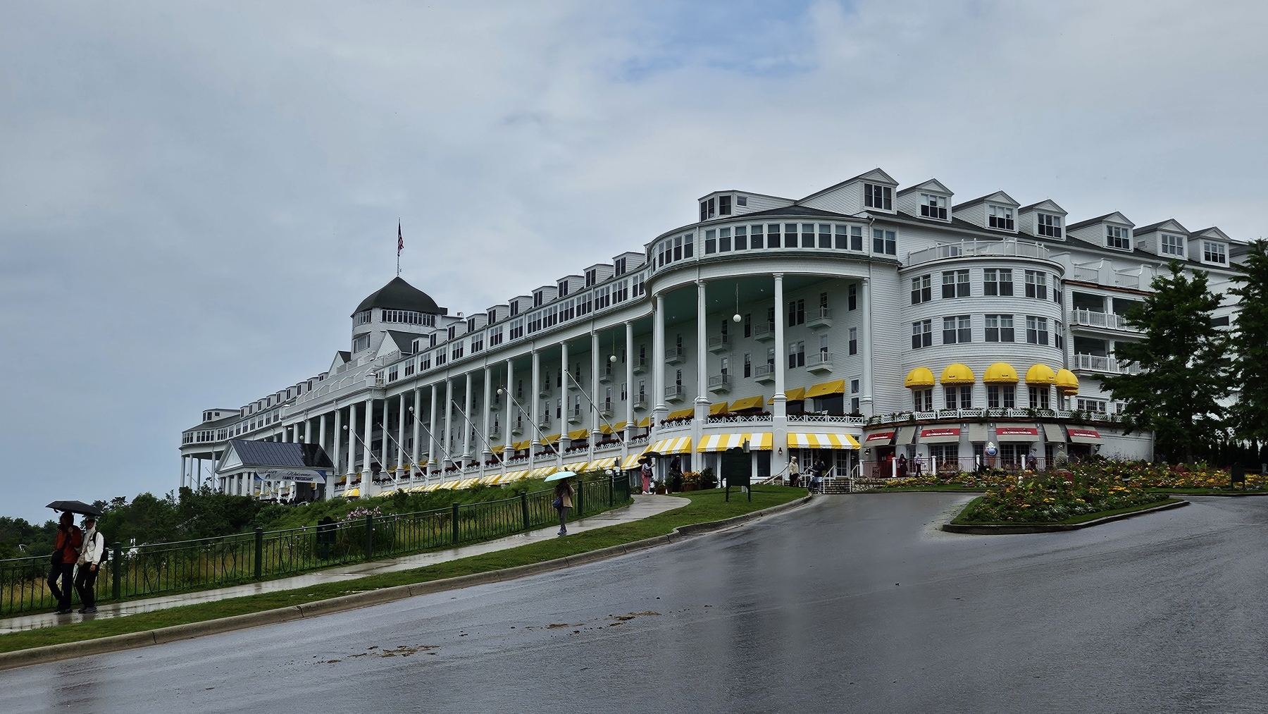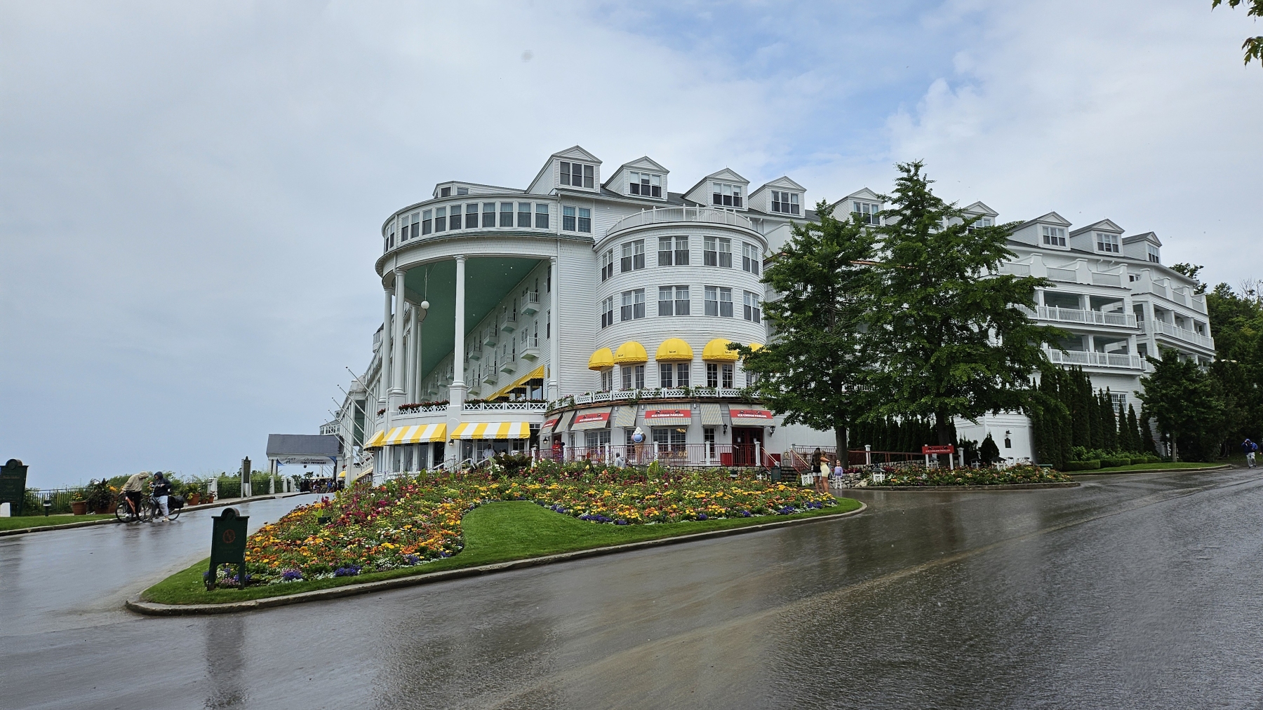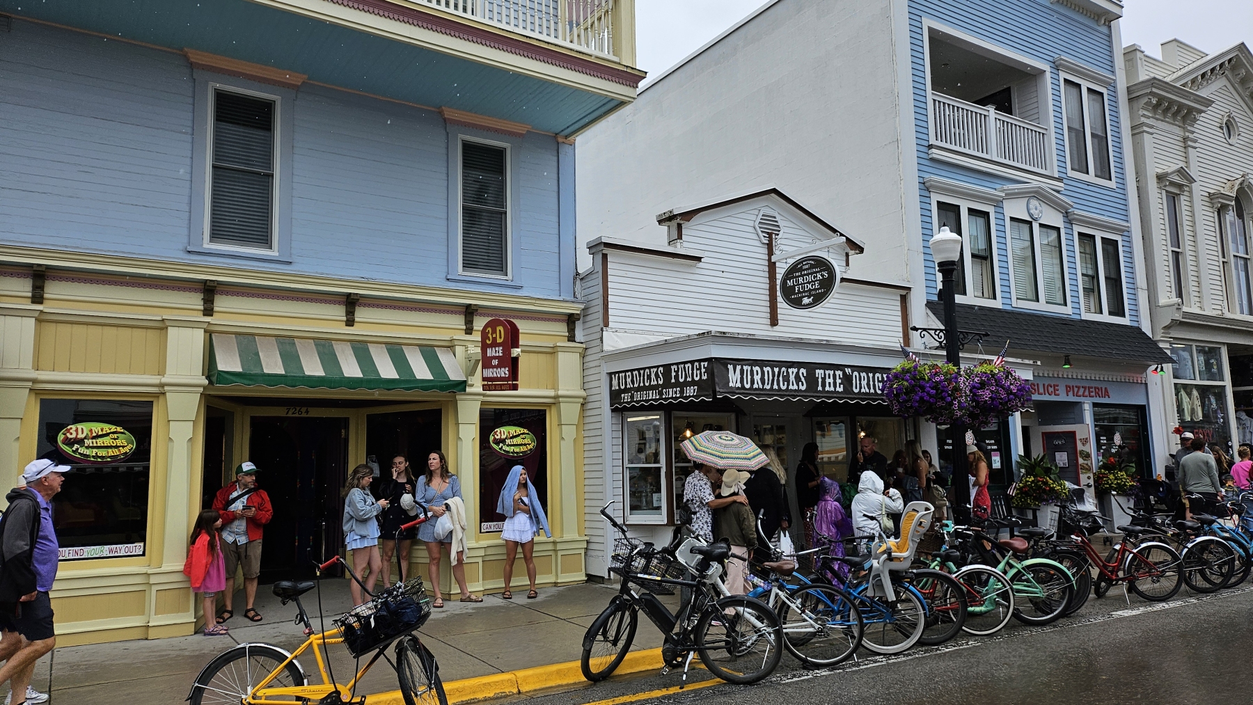 After a wonderful second week at our campground, we finally got to go to Mackinac Island. The campground offered a free shuttle to the dock, which was nice. But it was going to be a rainy day. We were ready and bundled up as we got onto the ferry. We took lots of photos and were the last ones off the dock.