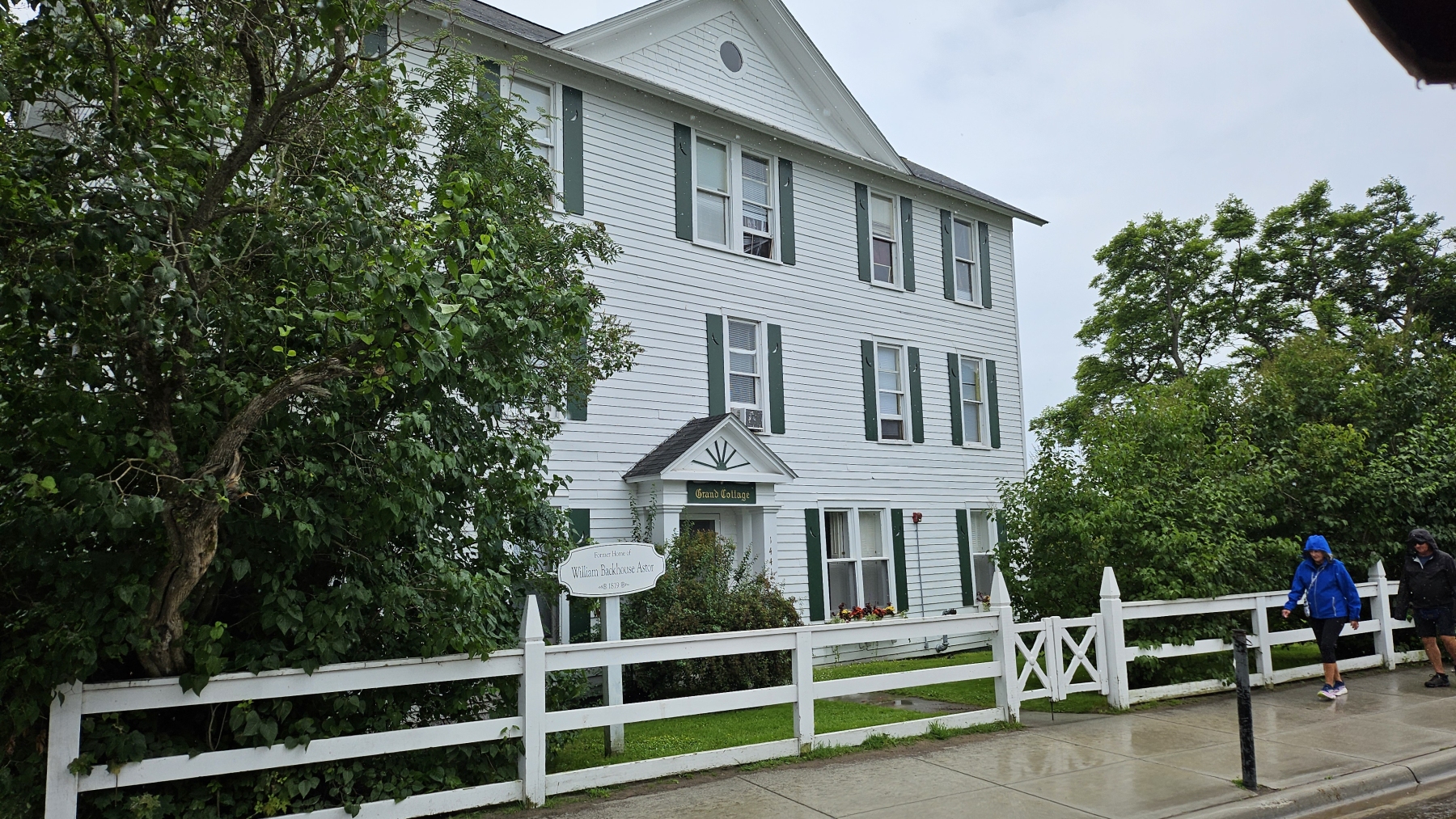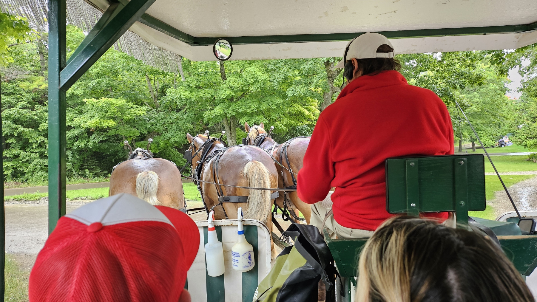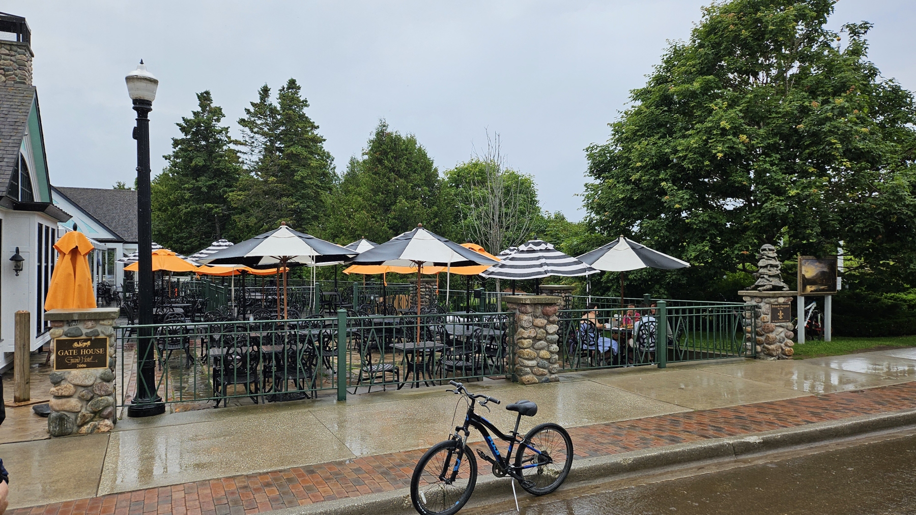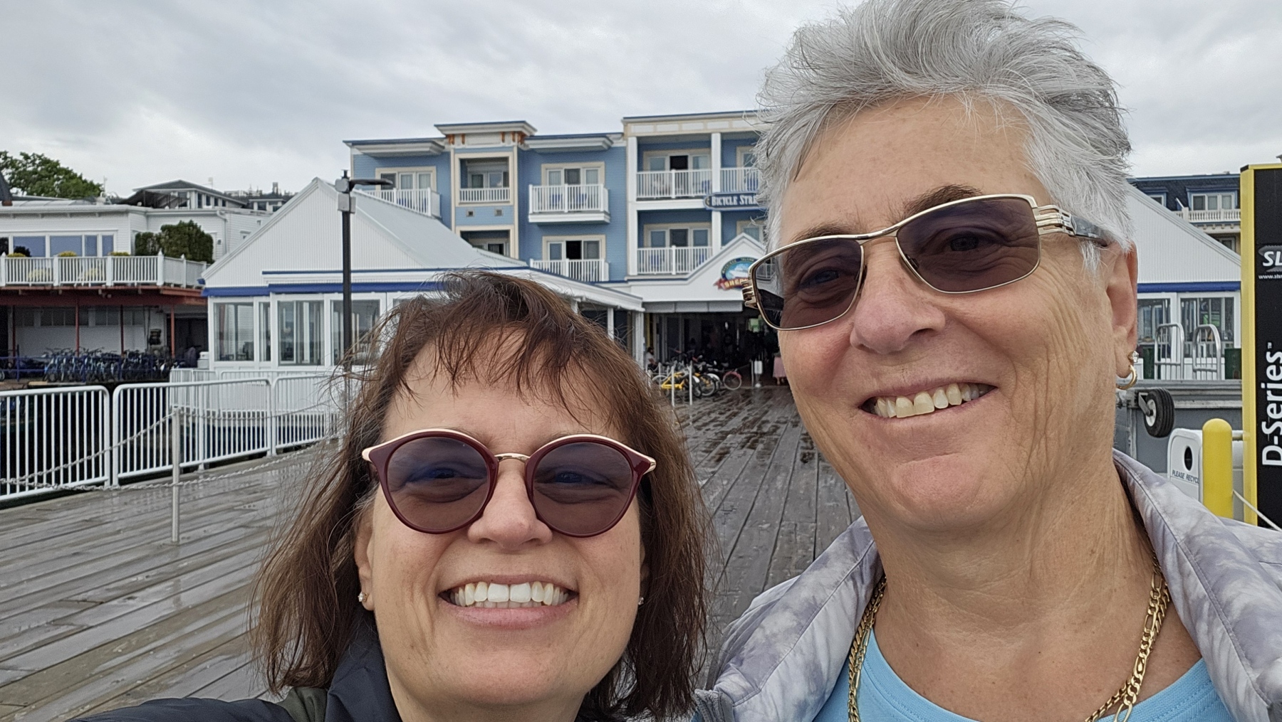 After a wonderful second week at our campground, we finally got to go to Mackinac Island. The campground offered a free shuttle to the dock, which was nice. But it was going to be a rainy day. We were ready and bundled up as we got onto the ferry. We took lots of photos and were the last ones off the dock.