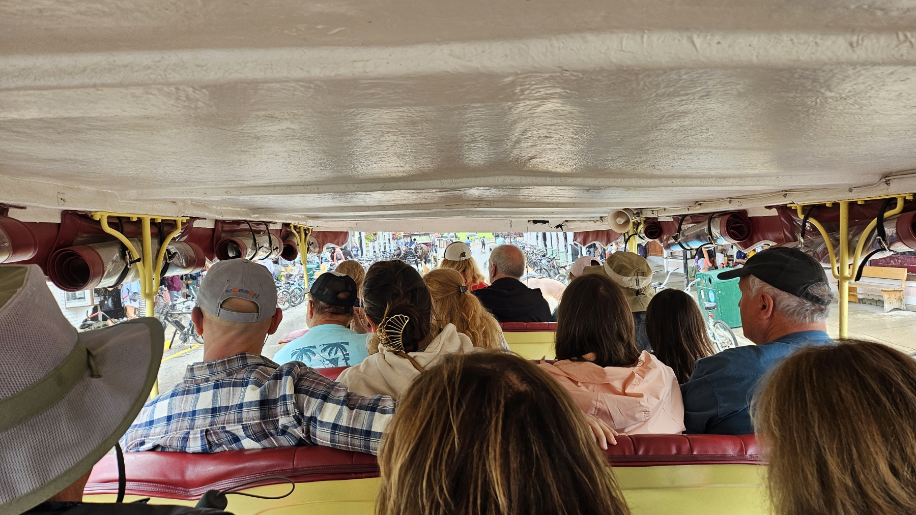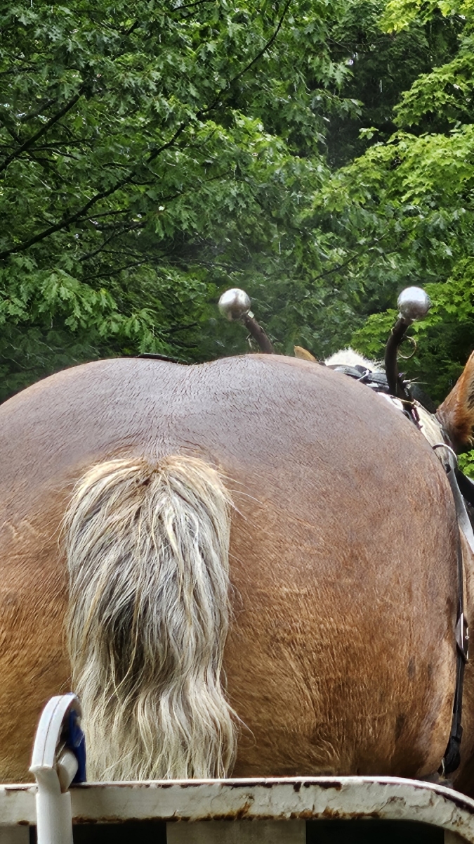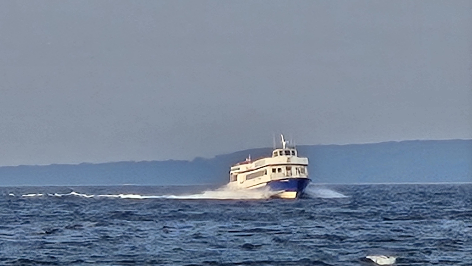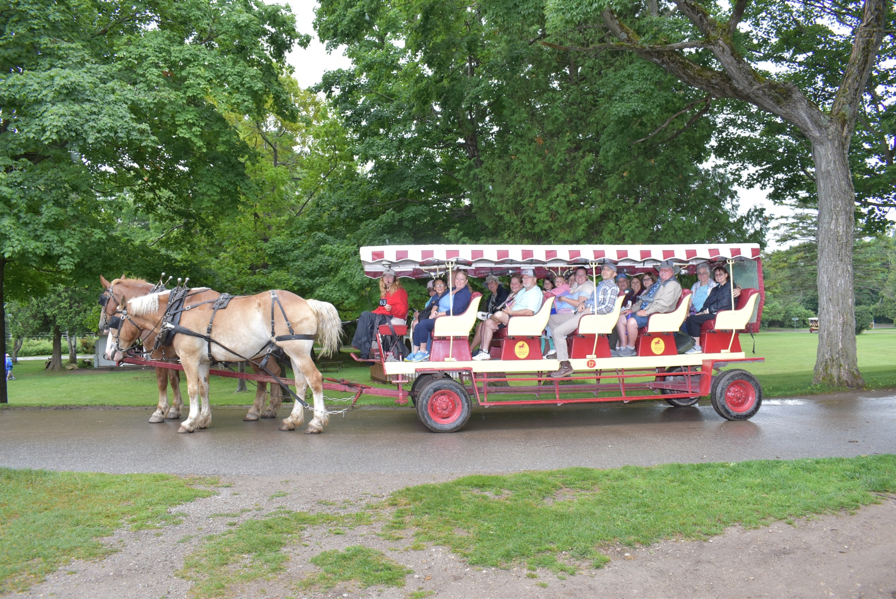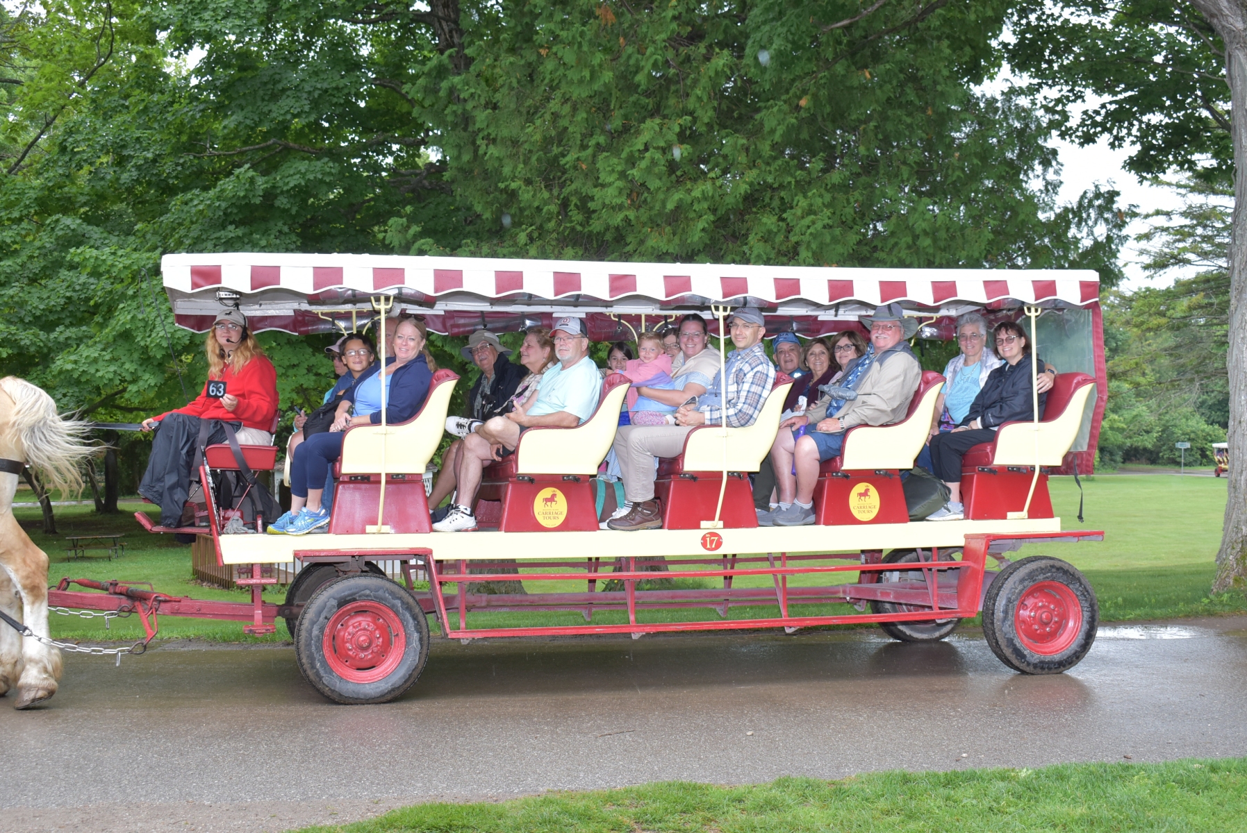 After a wonderful second week at our campground, we finally got to go to Mackinac Island. The campground offered a free shuttle to the dock, which was nice. But it was going to be a rainy day. We were ready and bundled up as we got onto the ferry. We took lots of photos and were the last ones off the dock.