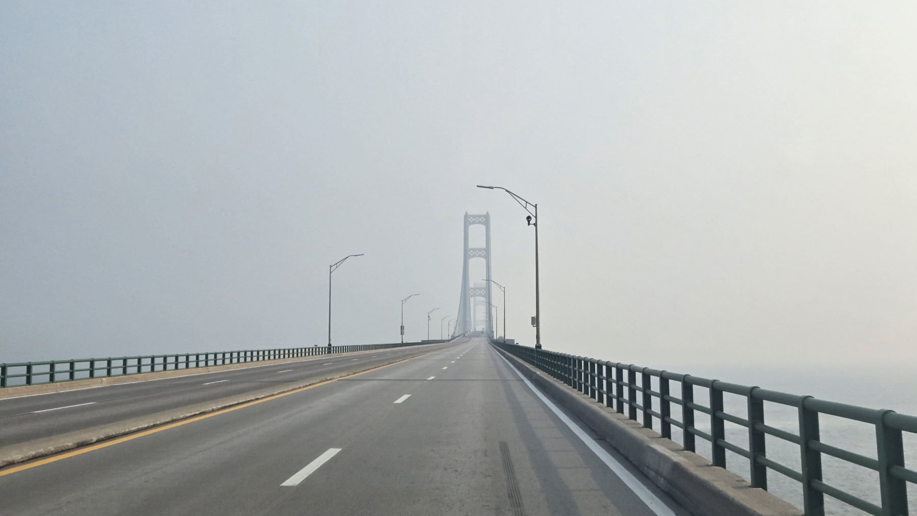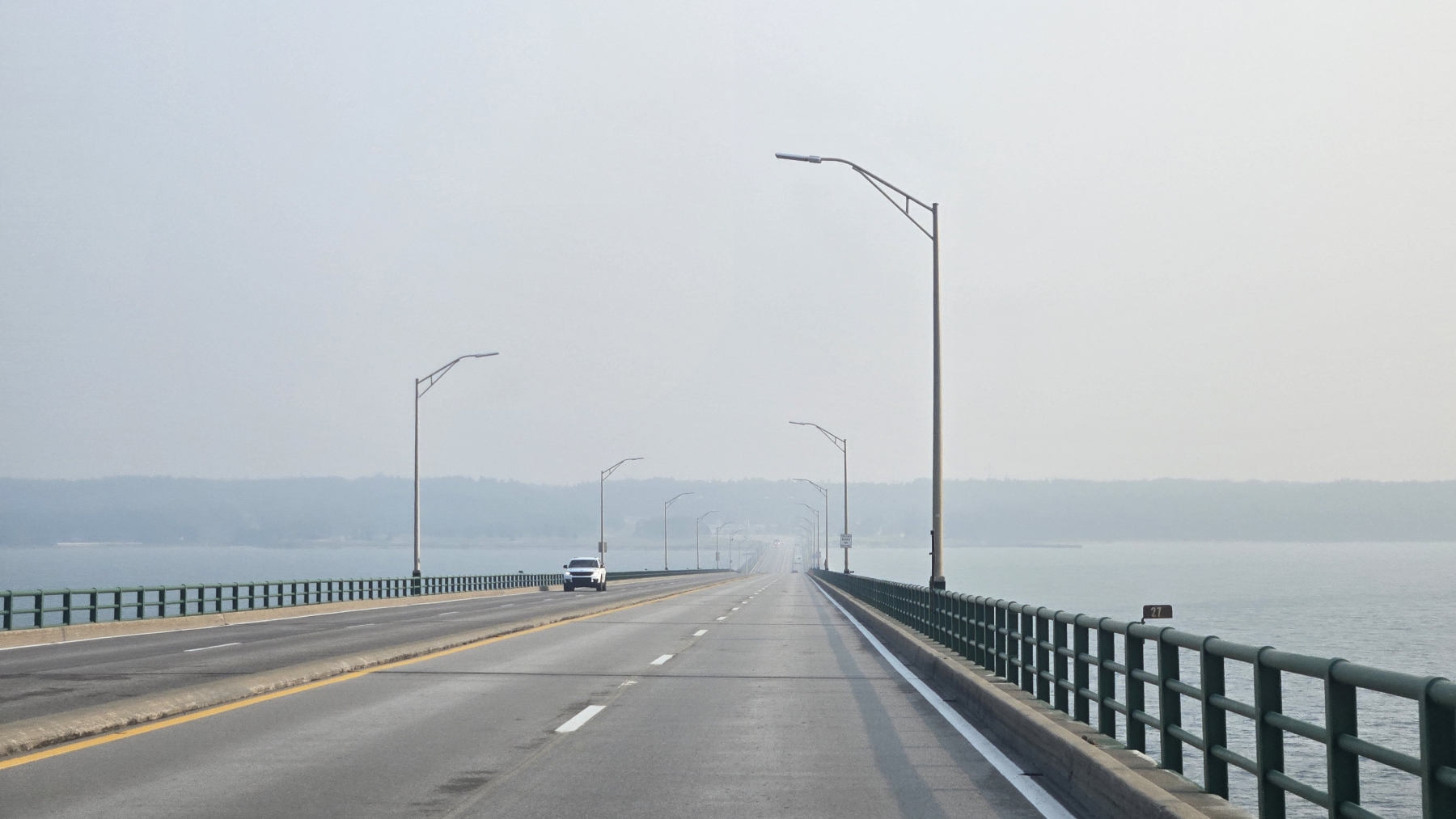 During our first weekend in the city, we headed to the Mackinac Bridge to check it out. The smoke from the Canadian wildfires was particularly thick in the morning as we drove across, making it look foggy and weird but somehow gorgeous. The bridge is really pretty.