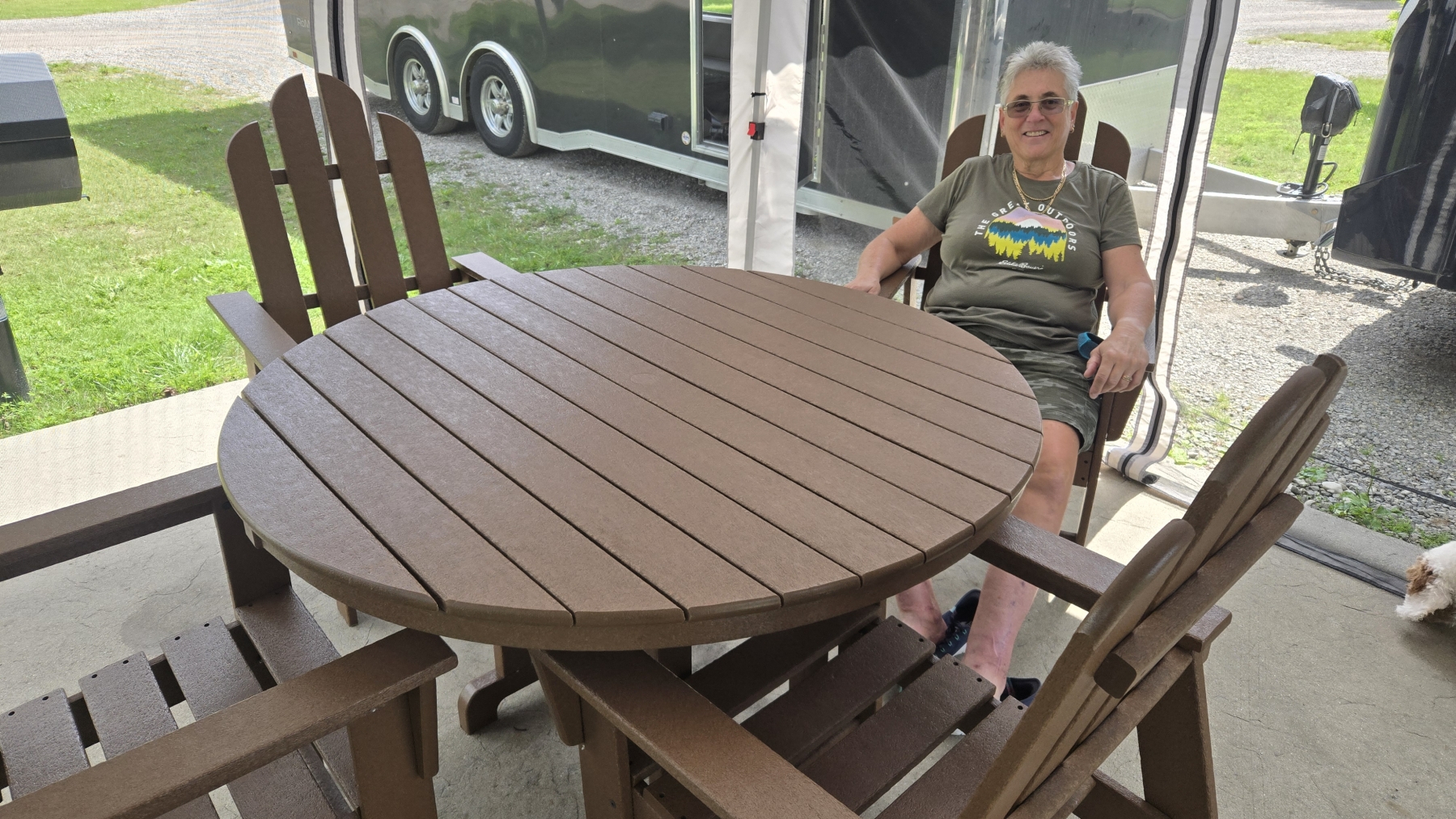 The campground was lovely, and we had a nice spot with patio furniture. Margot set up the canopy with bug screen, though the bugs weren't too bad (we saw mosquitoes in full force a few times). The town, though, was a "fudge and ice cream experience" where the food was overpriced for tourists and not particularly memorable. But it was beautiful.