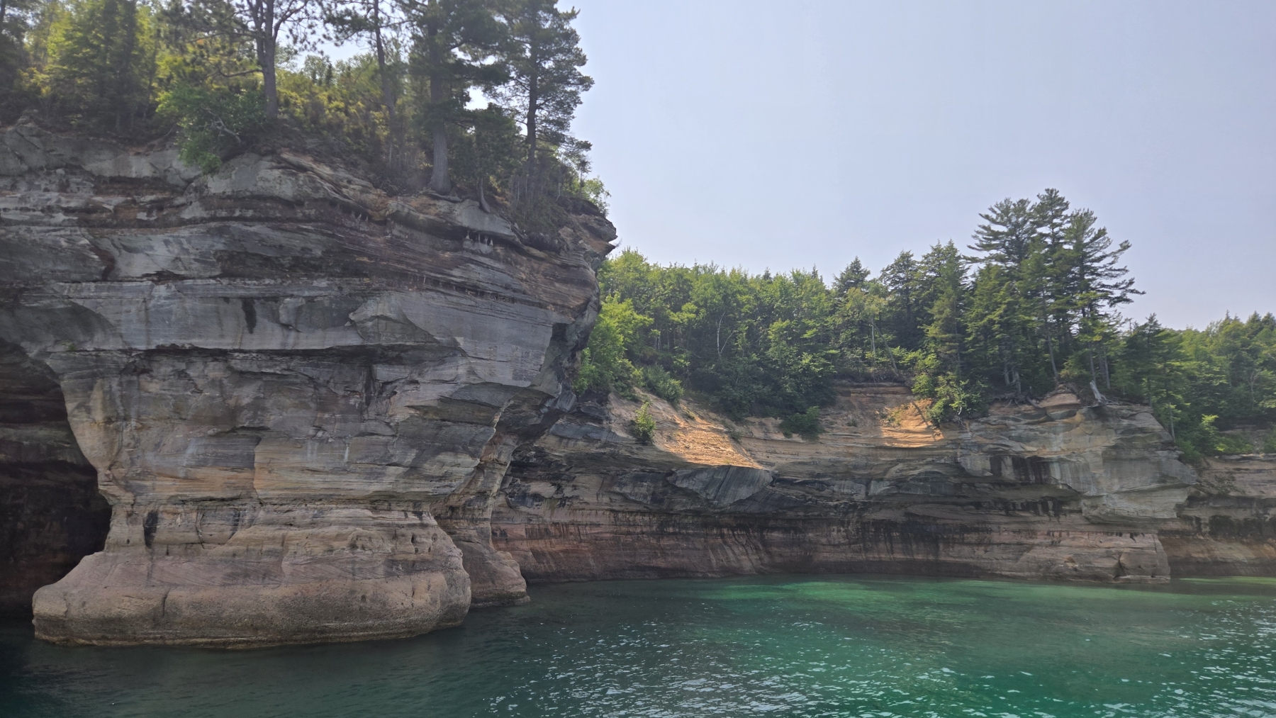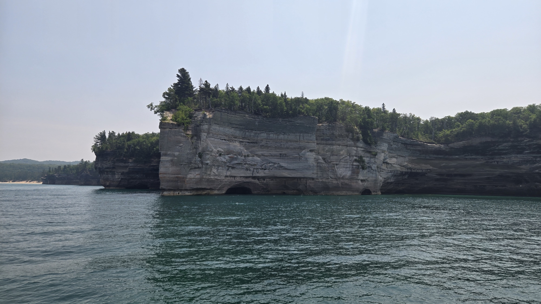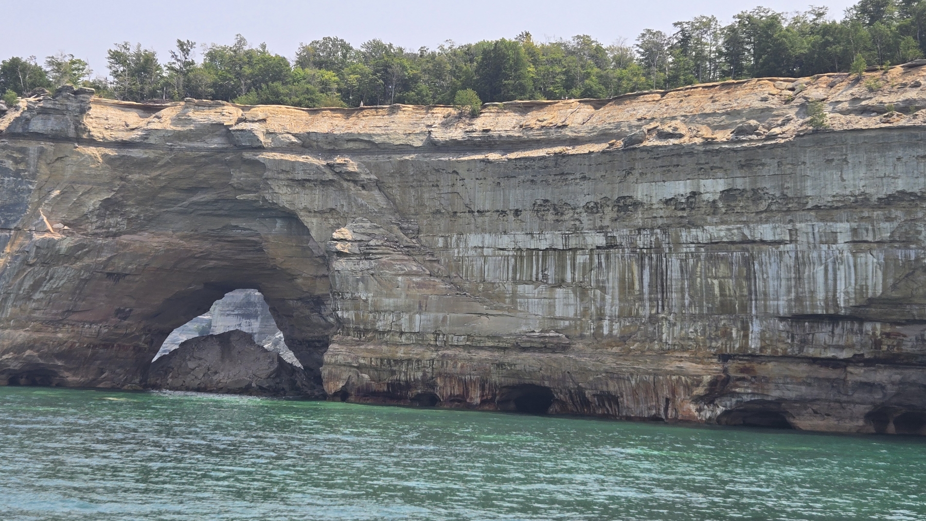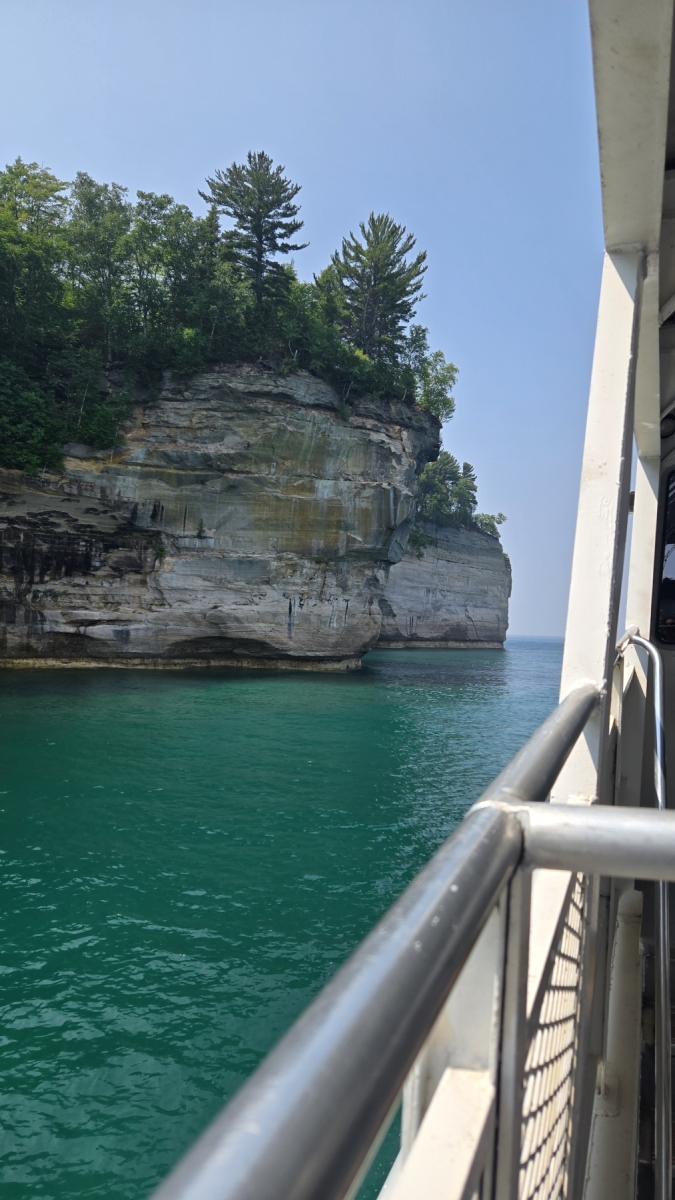 The upper peninsula met us on the other side, and we found that side to be more rustic but nice. We drove along Lake Michigan to get to the Munising Falls Visitor Center. It was a tiny place, but the town was really sweet. We had lunch before getting on a tour boat to visit the Pictured Rocks National Lakeshore. We had a lovely day, and the scenery was amazing. It couldn't have been a better tour, and it was nice to see Margot able to do stairs to get up and into the big boat.