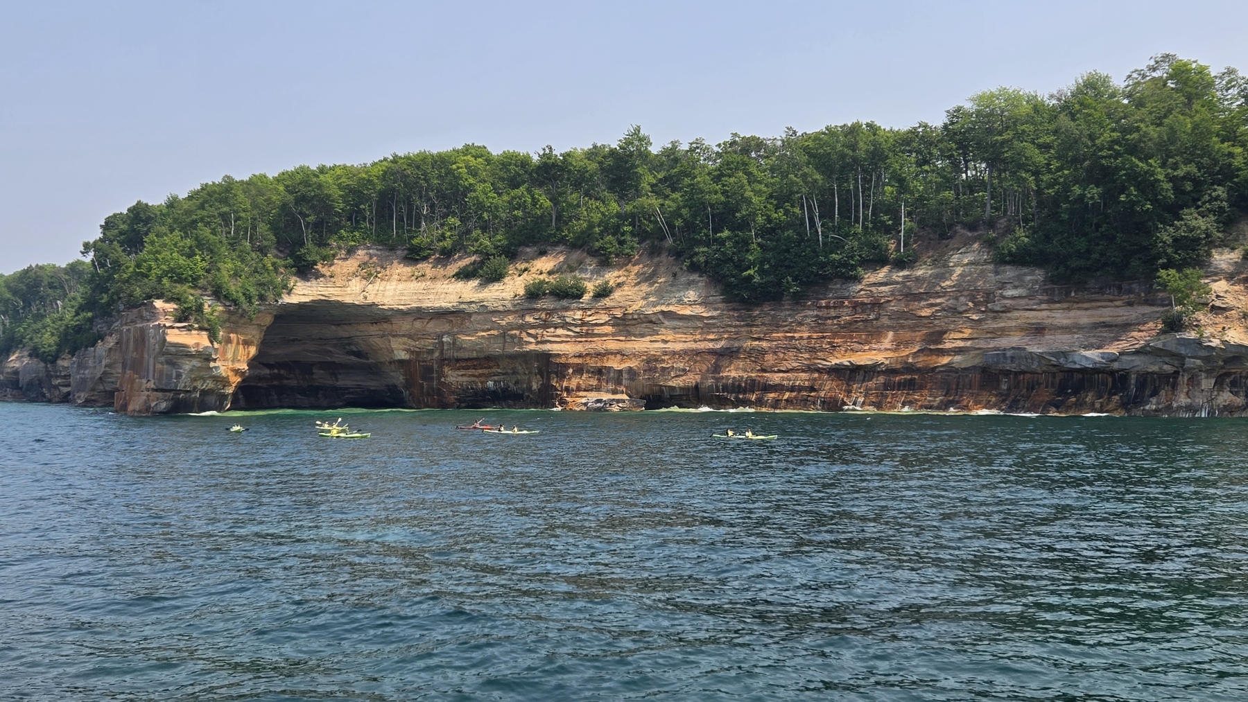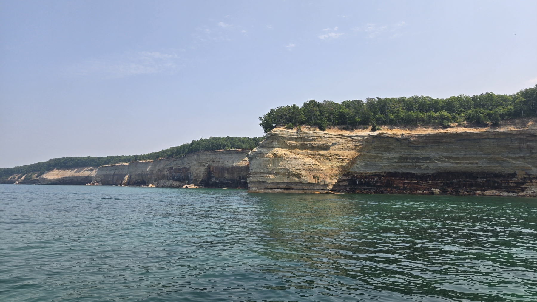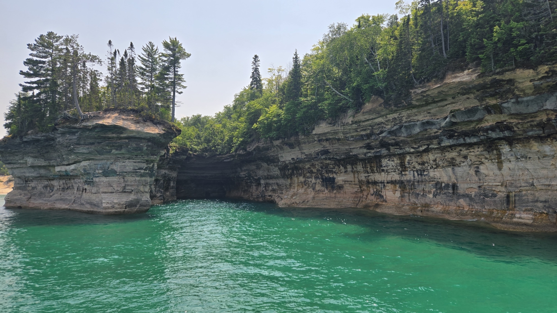 The upper peninsula met us on the other side, and we found that side to be more rustic but nice. We drove along Lake Michigan to get to the Munising Falls Visitor Center. It was a tiny place, but the town was really sweet. We had lunch before getting on a tour boat to visit the Pictured Rocks National Lakeshore. We had a lovely day, and the scenery was amazing. It couldn't have been a better tour, and it was nice to see Margot able to do stairs to get up and into the big boat.