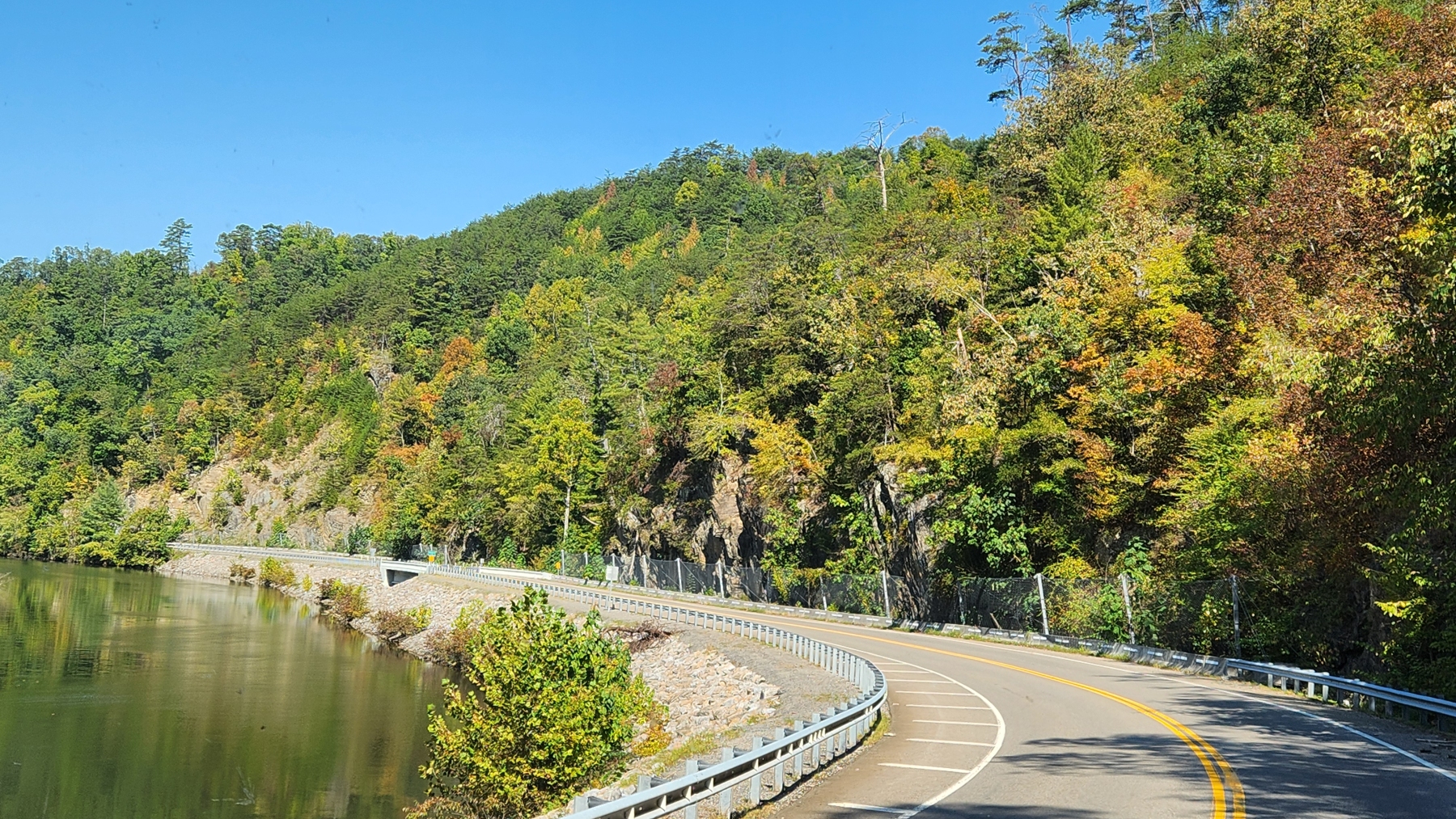 But first, we drove from the Great Smoky Mountains down to less hilly regions, barely leaving before Helene showed up to mess everything up. Our site in Alabama was right on Logan Martin Lake at a campground with our own docks. The scenery was just perfect. One the best sights on our trip was the winding path along the Ocoee River. There were people rafting and kayaking, and it looked like a very popular place for it. We were happy to have discovered the area for ourselves, though we both knew we'd probably never be back to that part of eastern Tennessee.