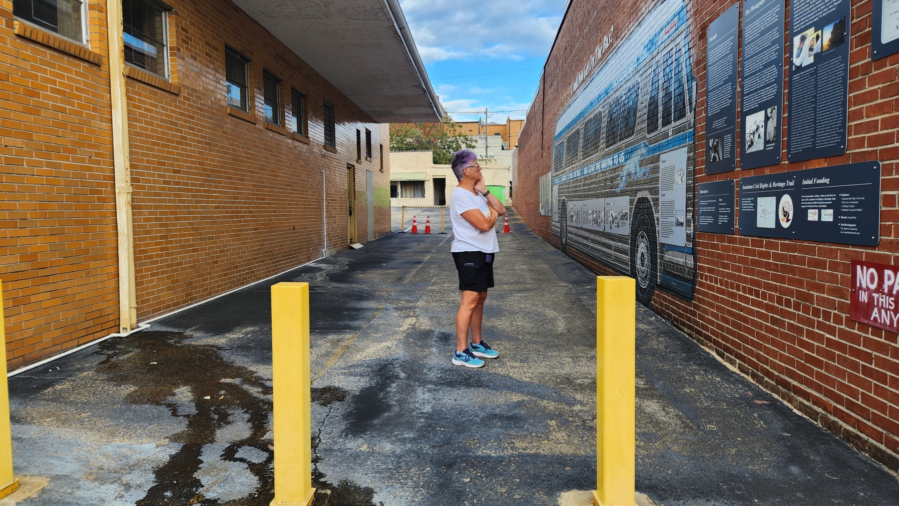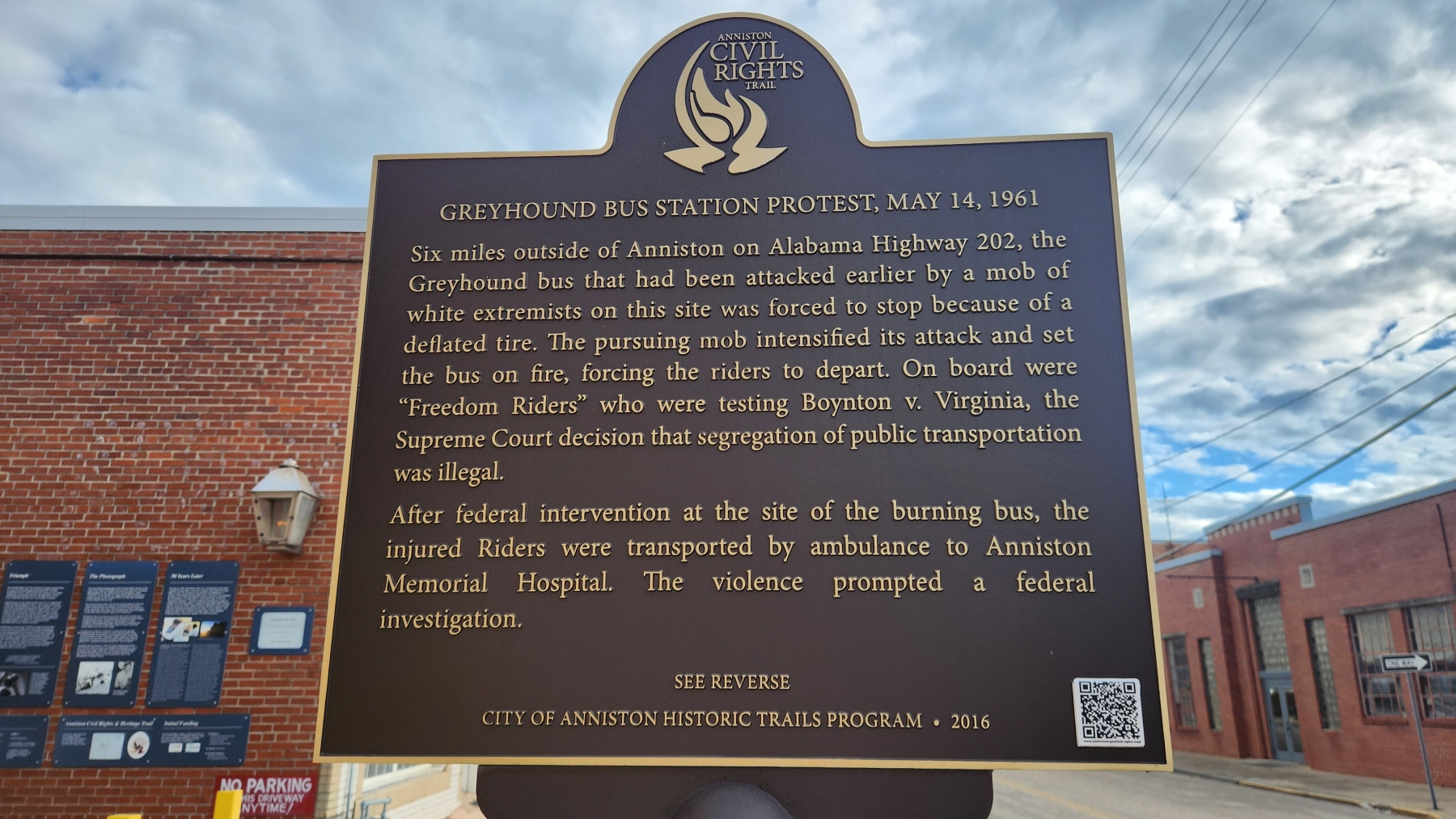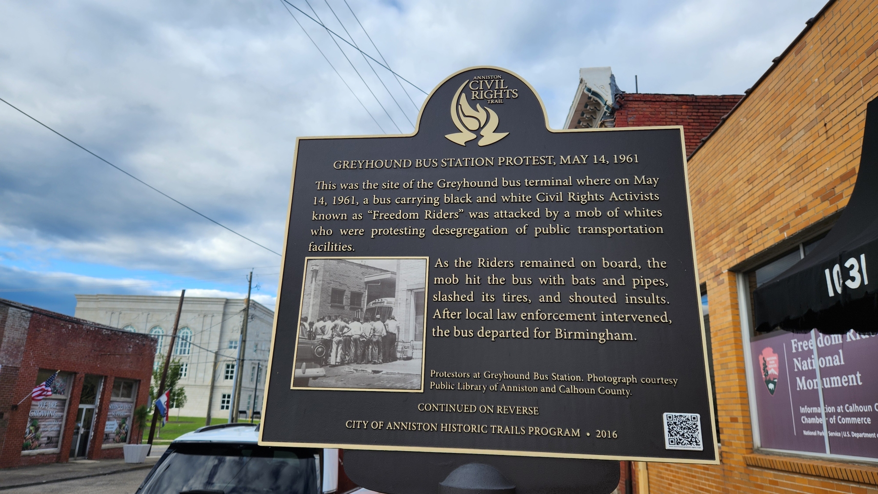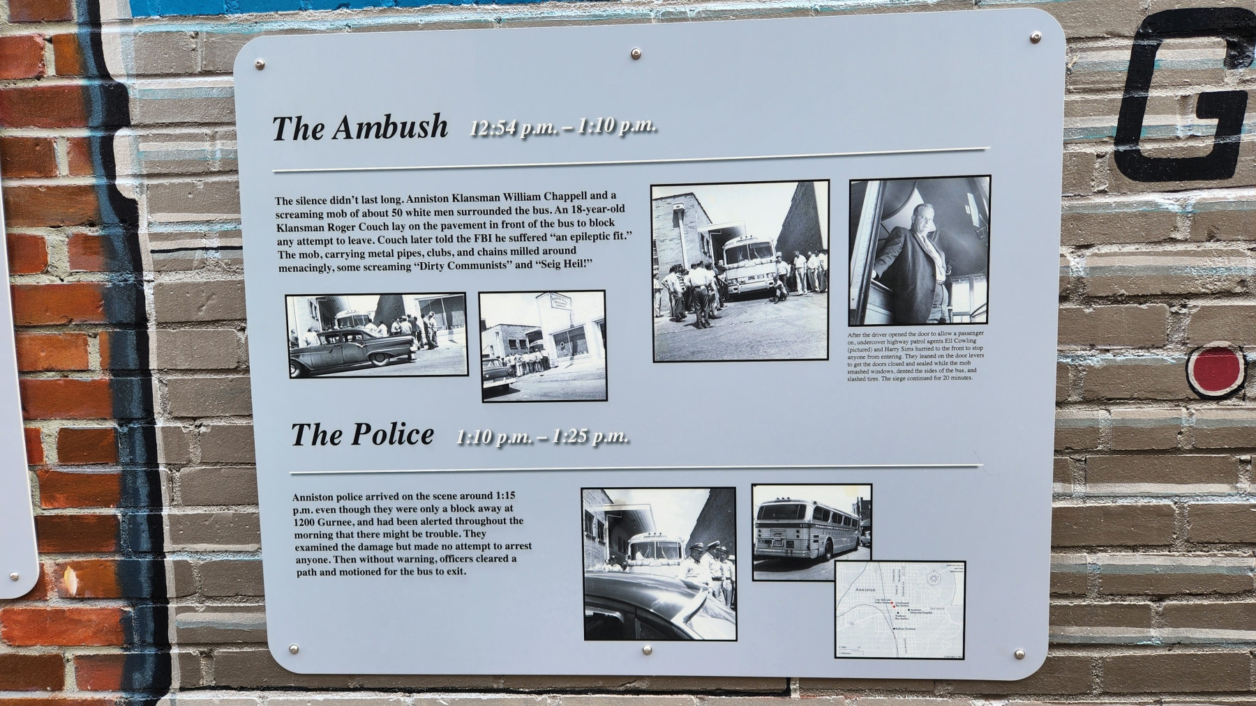 We were taking mom back to Heidi's in Anniston, which meant we needed to learn more about what happened there at the Freedom Riders National Monument. We had been learning a lot about the Civil Rights Movement, and the bus that was burned by white supremacists was a story we thought we knew. We visited the spot where the bus was burned (barely called out by a sign off the highway, unfortunately), and then we went to the old bus station in Anniston. It was closed, but they had a large bus mural in the alley where they were attacked, with signs explaining what happened. There was even a stand with audio from a survivor who was there. It was very powerful, even though we didn't have a visitor center to learn more.