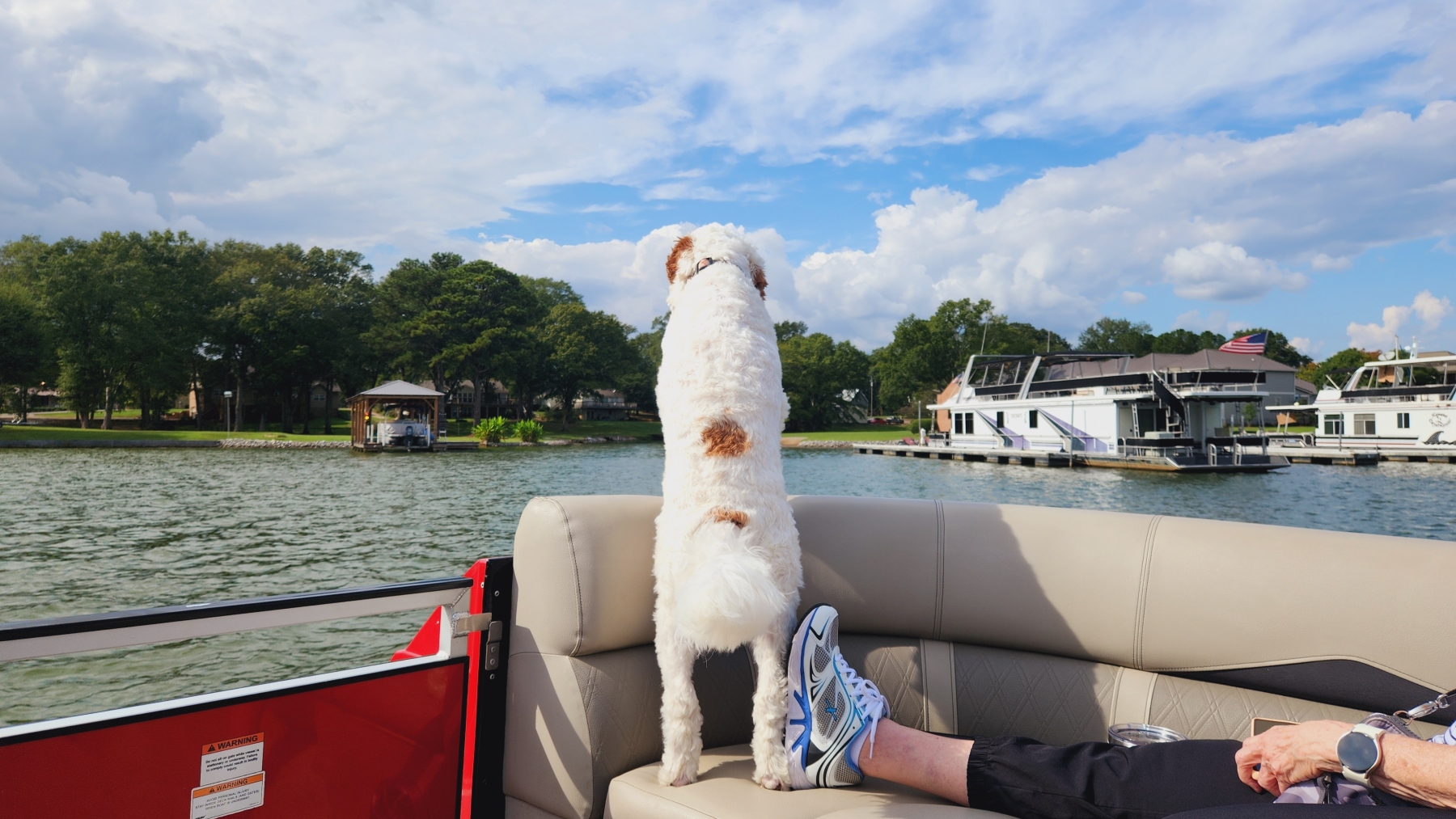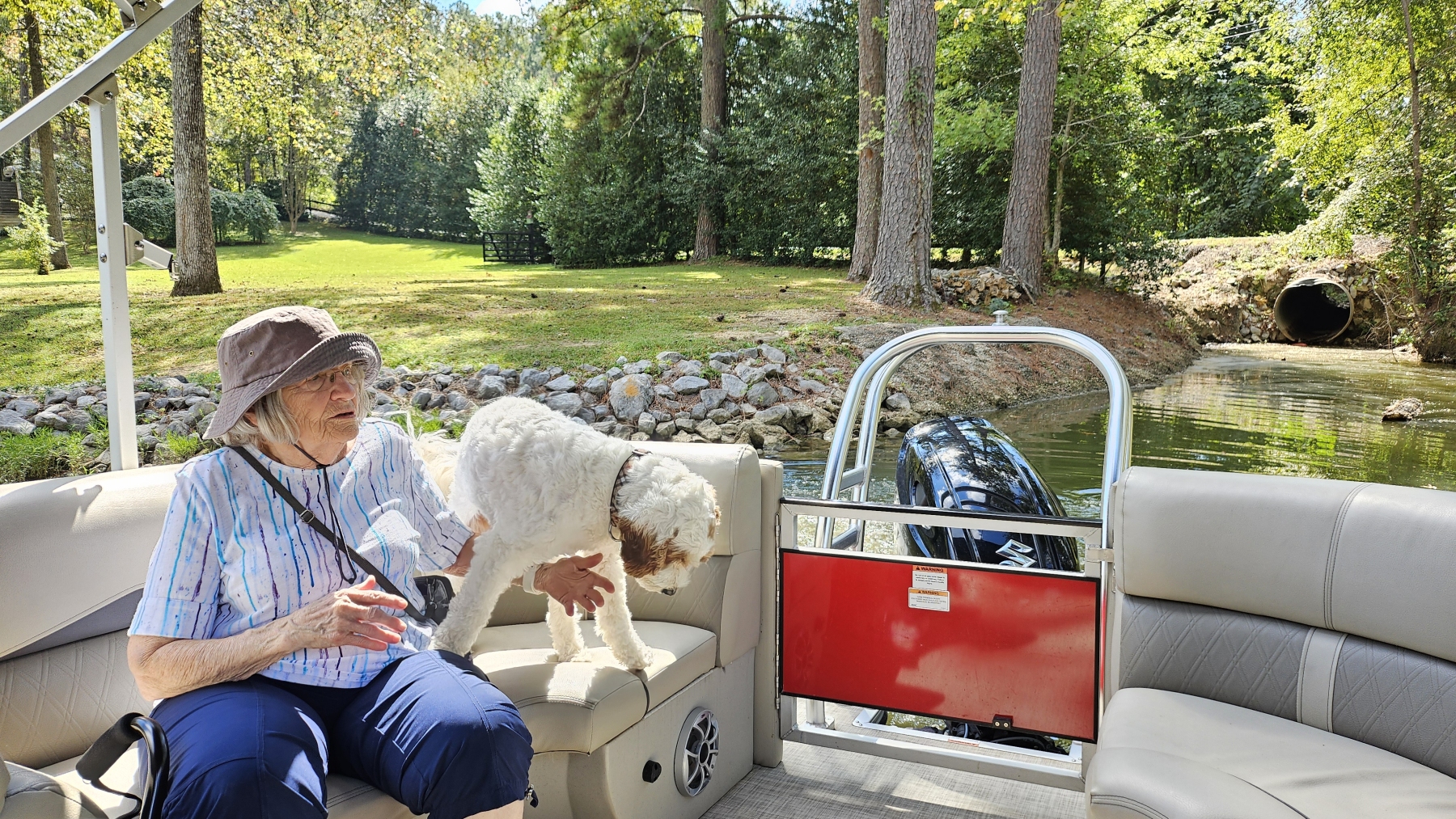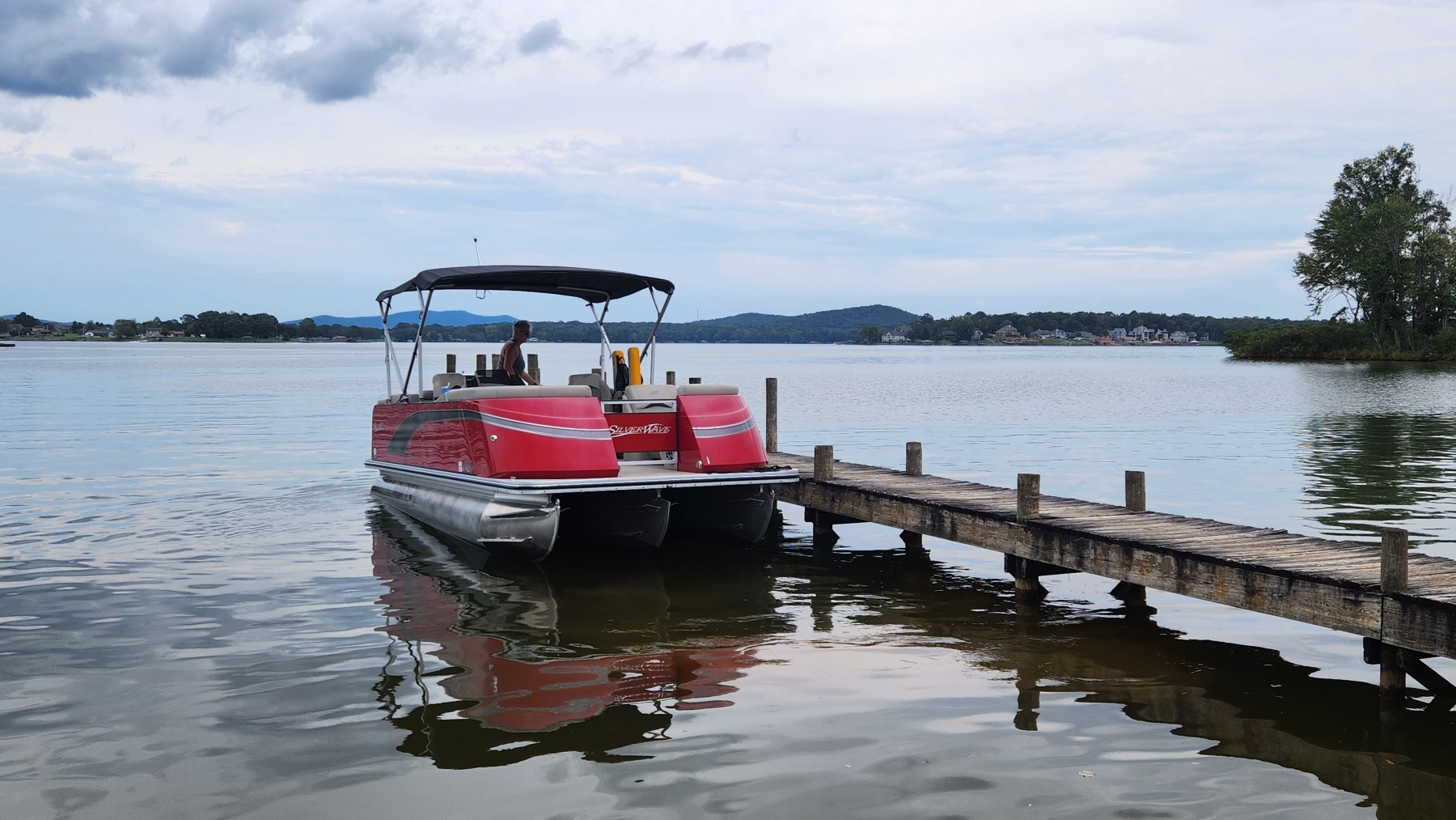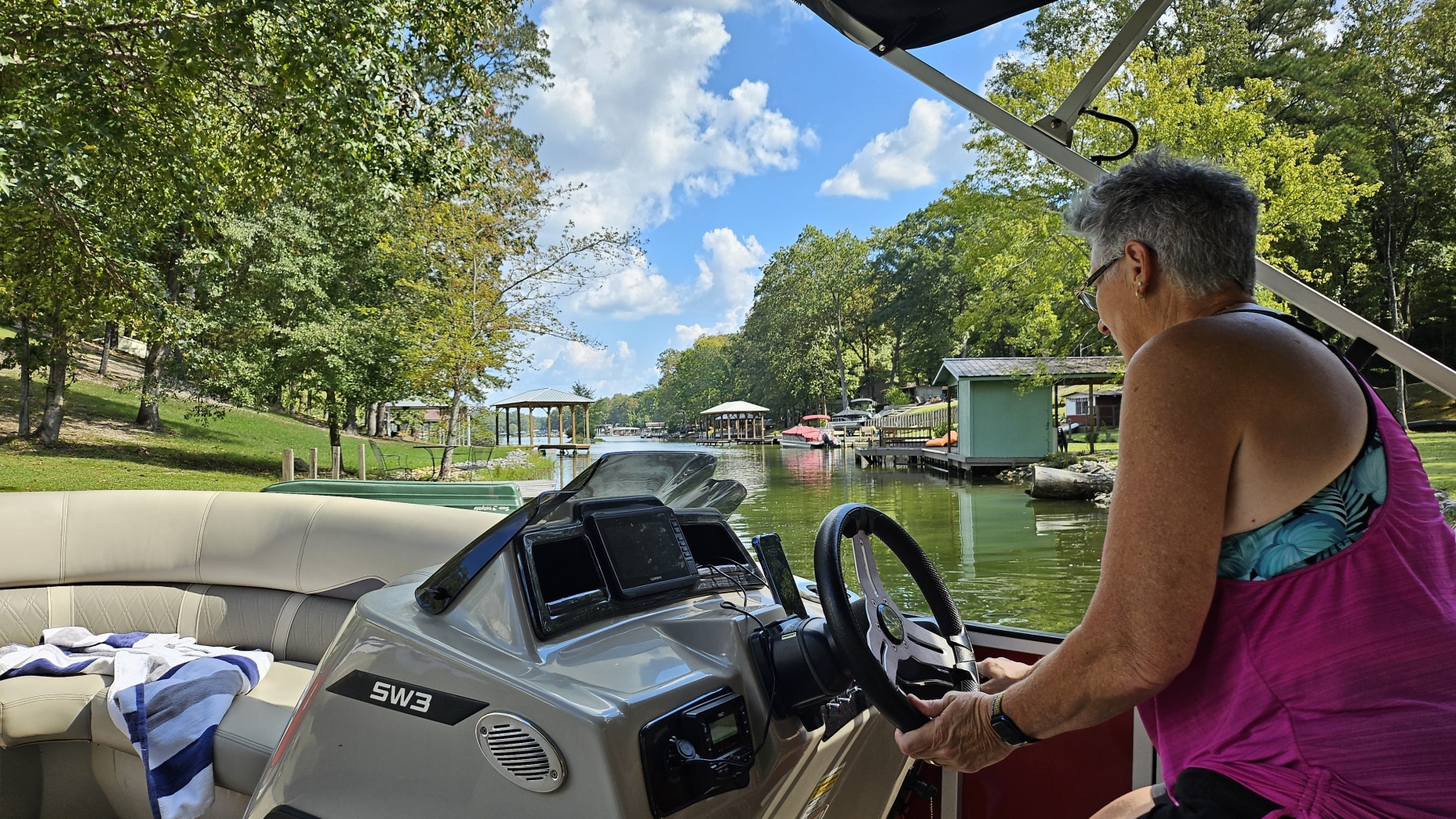We dropped mom off, and then picked her up again a bit early on Thursday evening. We rented a pontoon for three days that Friday morning, which was a blast. It was tied to the dock about 20 feet from our site the whole time, and the lake was lovely.