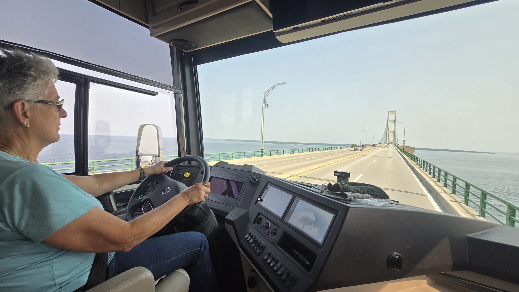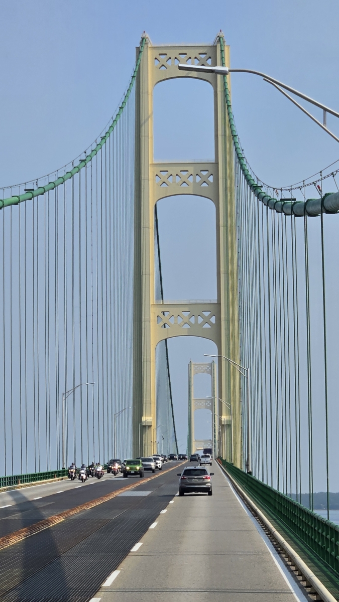 Monica's mom speaks fondly about her time in Door County, Wisconsin, and that was next on our list. We left Mackinaw City and headed over the Mackinac Bridge to the upper peninsula. We were there a few weeks before and it was a really nice drive, again.