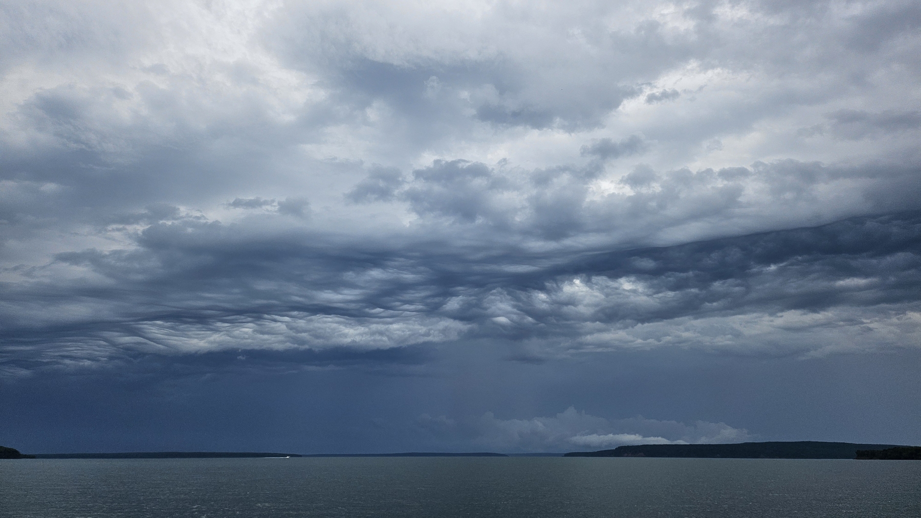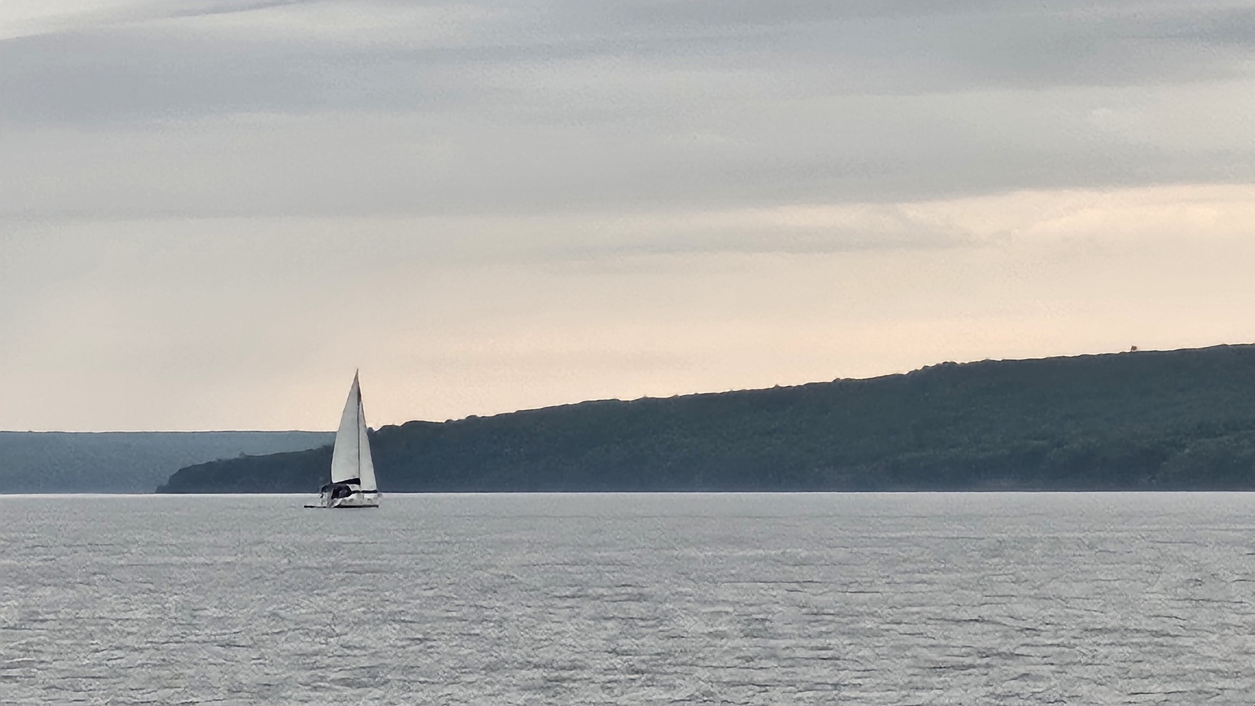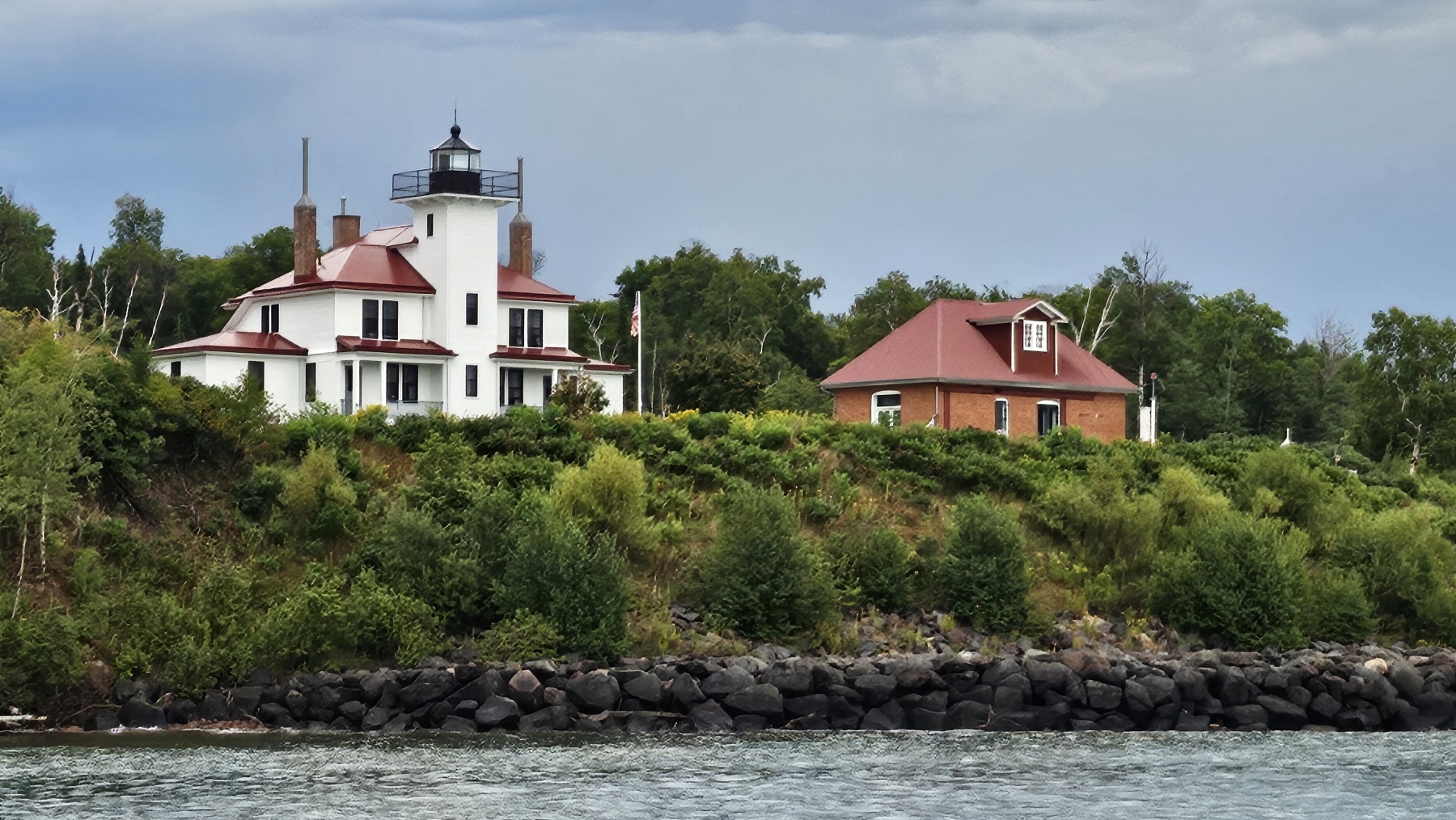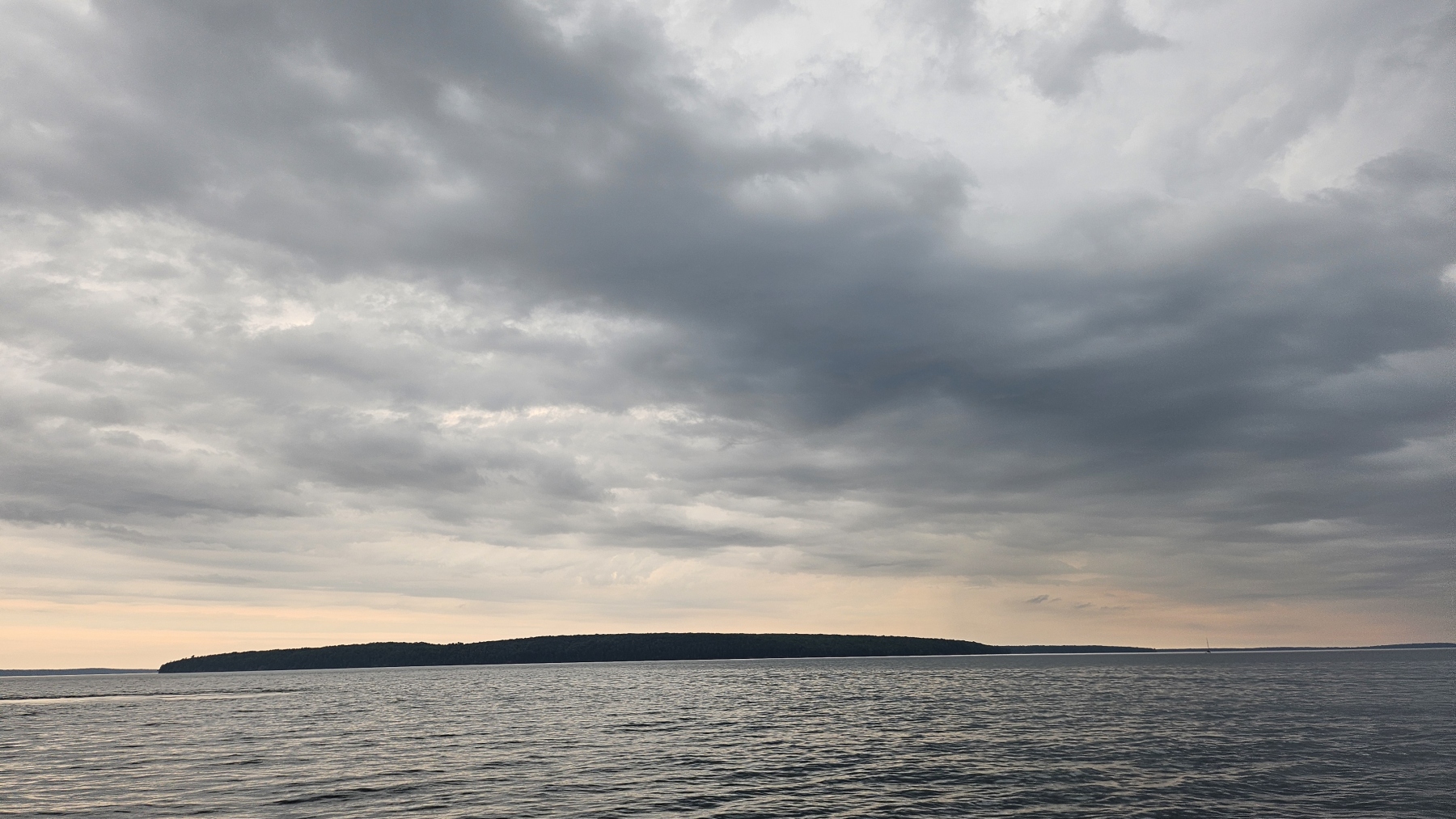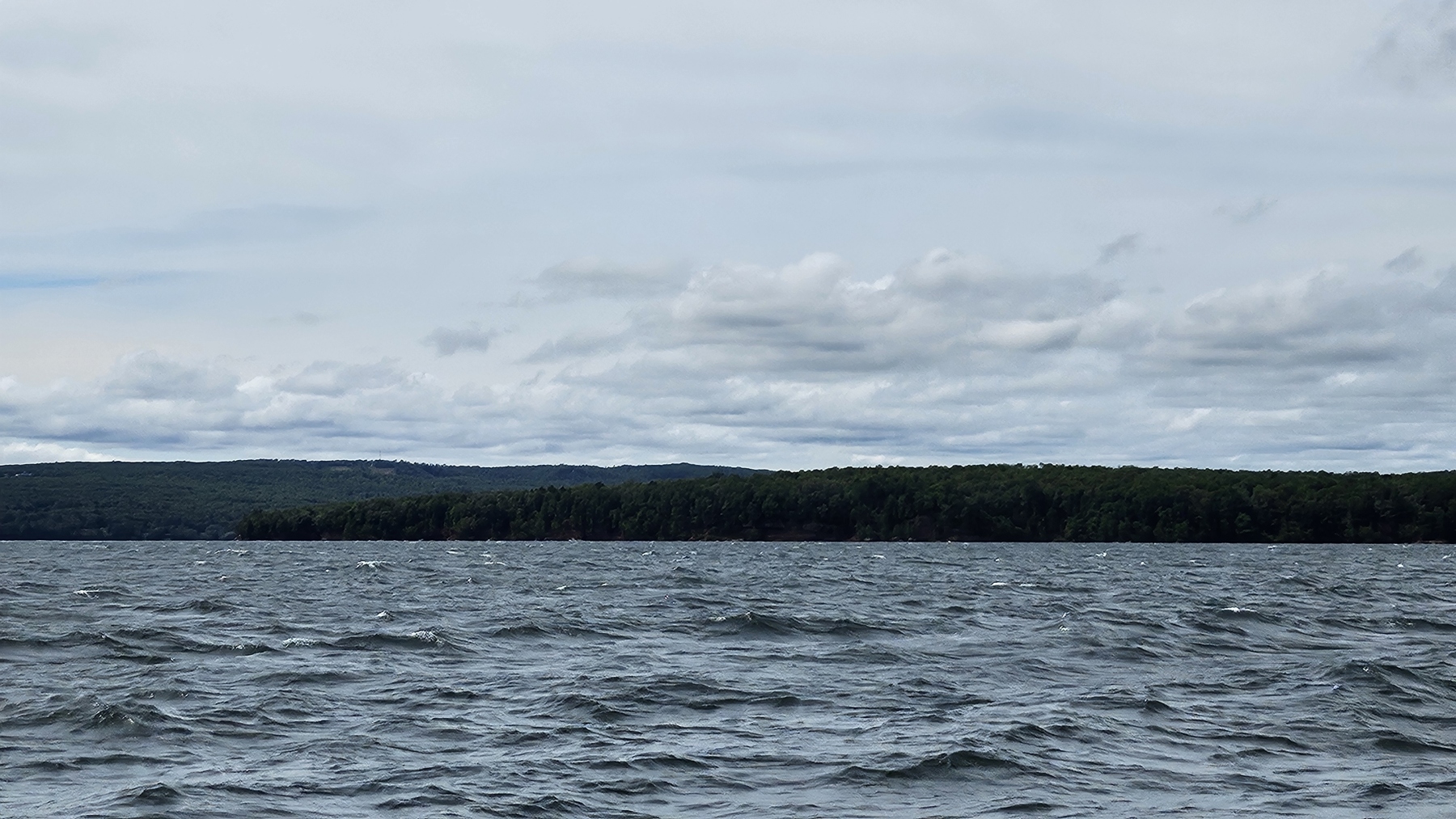 After three reschedules, our Apostle Islands Boat Tour was happening! We got great seats on the big boat and had a great time. Monica read online first that the weather was chilly and potentially rainy on the exposed upper deck, so we got great seats in the enclosed area next to a window that could open and close. After a bit, all of the people who scrambled to get to the upper level were down with us trying to dry off. It was a rainy and chilly trip, but absolutely beautiful.