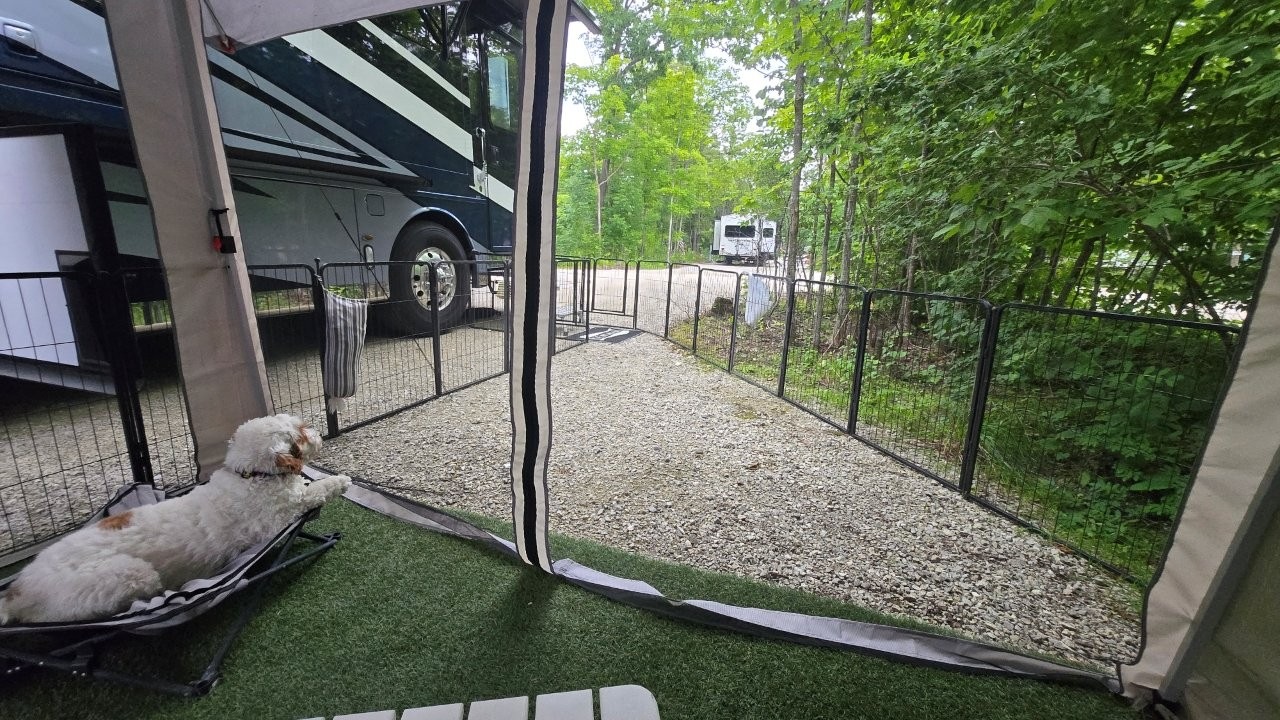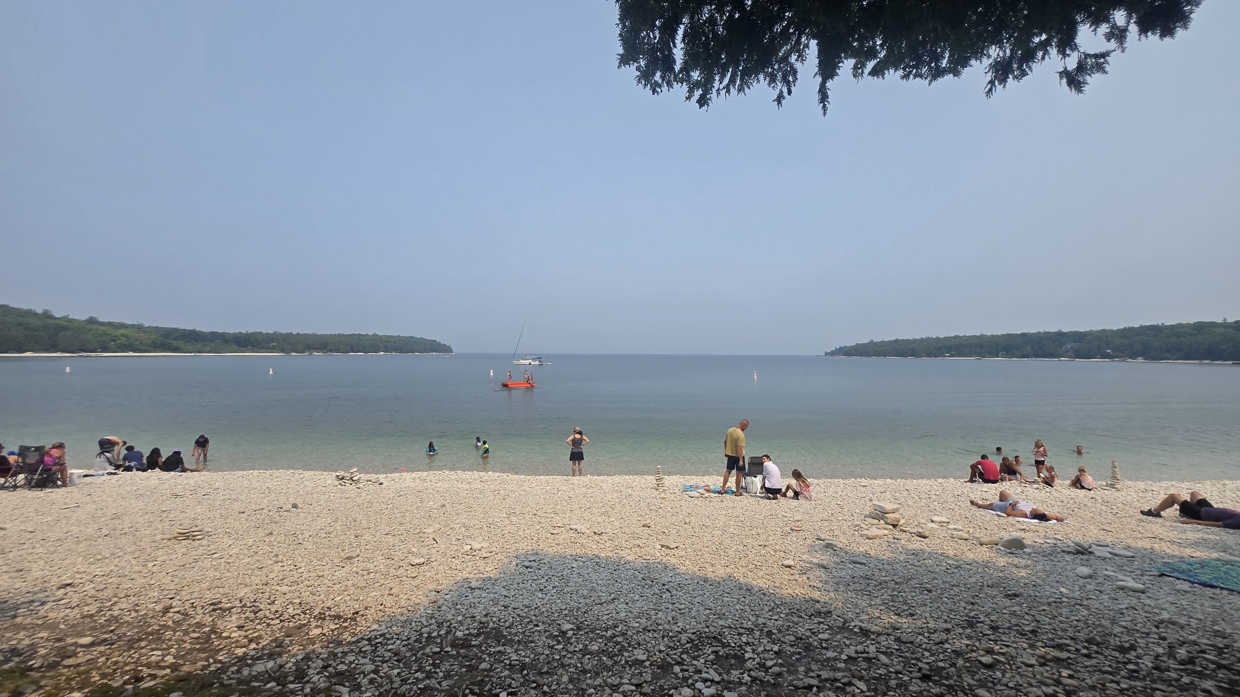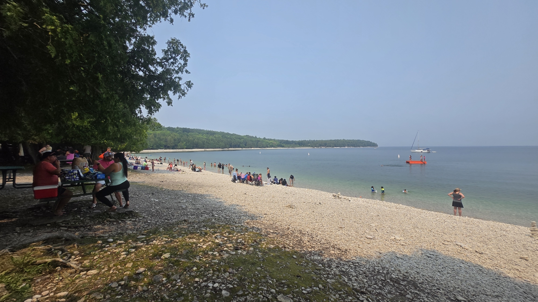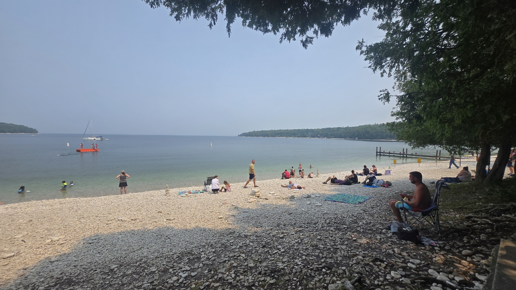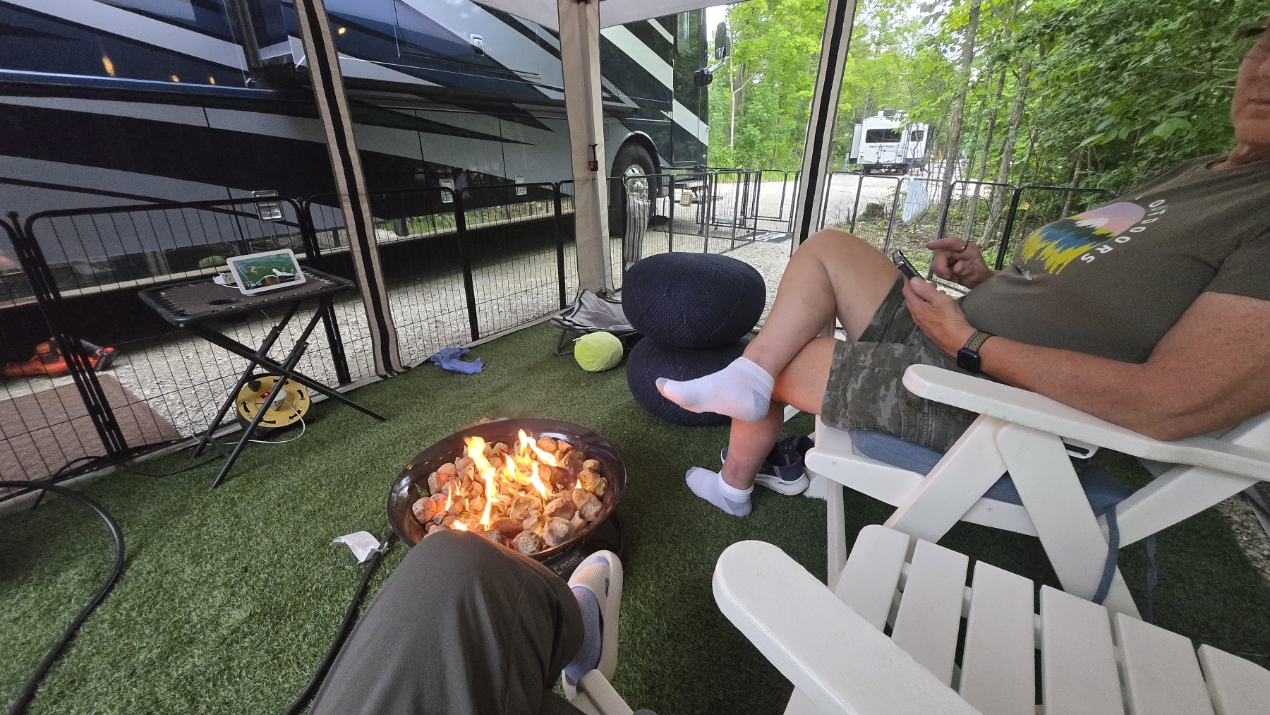 We were staying in Egg Harbor, one of the most popular places on the narrow strip of land between Green Bay and Lake Michigan, on the "thumb" of Wisconsin. The campground was in the woods, and we had to double check to make sure we weren't trying to set up camp in the middle of a road. Our site was huge and awesome, and it was going to be a great three weeks.