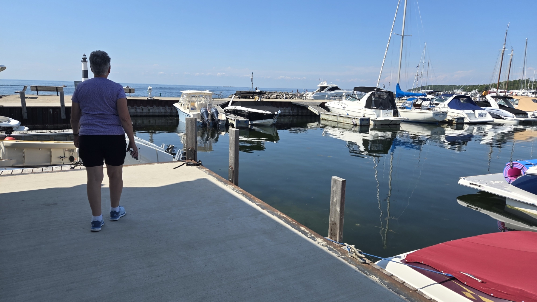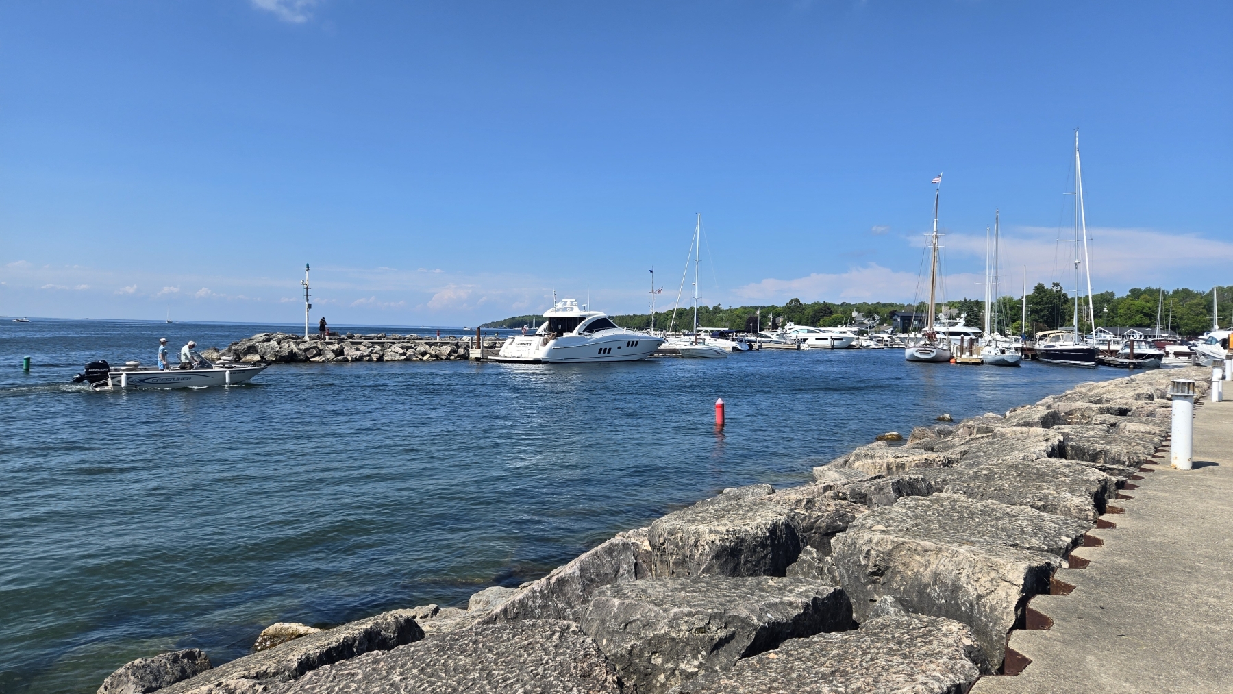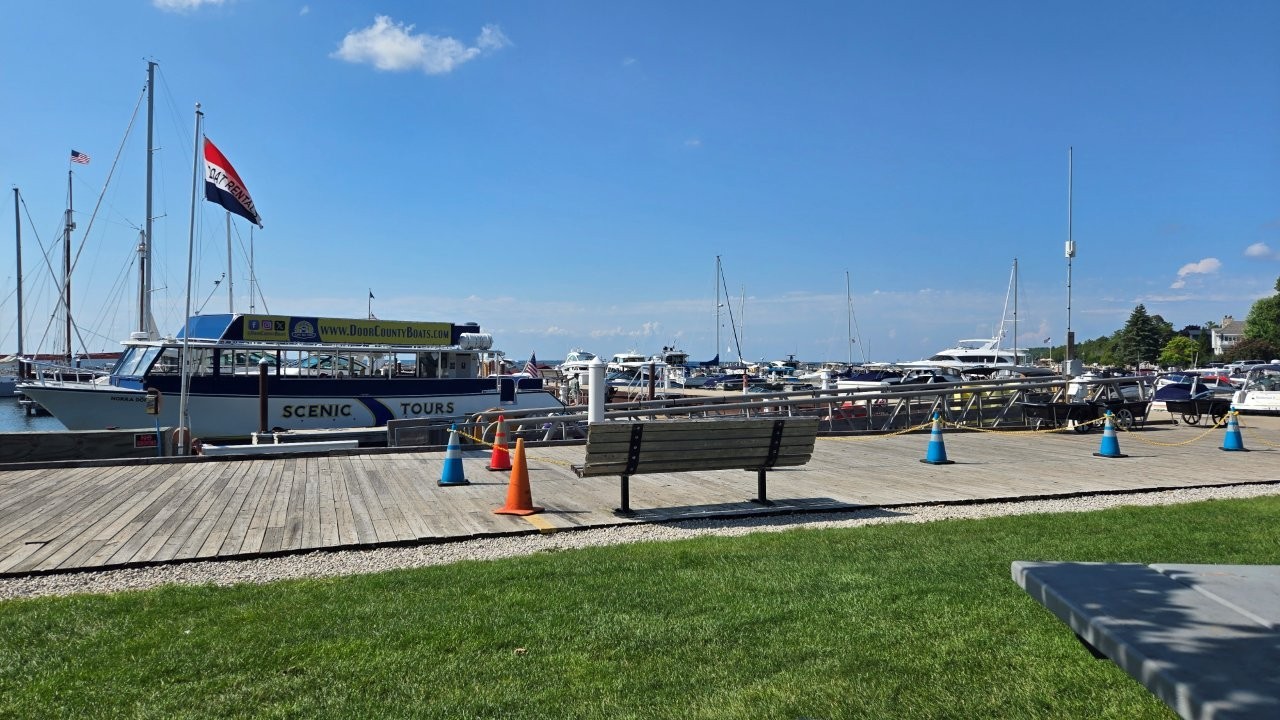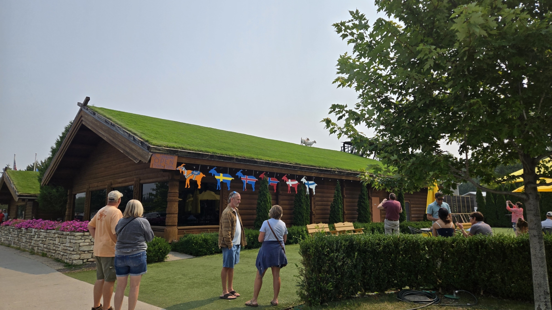 There are a few little towns along the county's peninsula, and we visited all of them. We mostly stayed on the Green Bay side. We had to visit Sister Bay and Al Johnson's Swedish Restaurant, of course. They have great food, and they have goats on their roof to keep the grass up there in check. We wandered around the marina across the street and marveled at how well Margot was healing. She wasn't back to normal yet, but it had only been five months since the incident.
