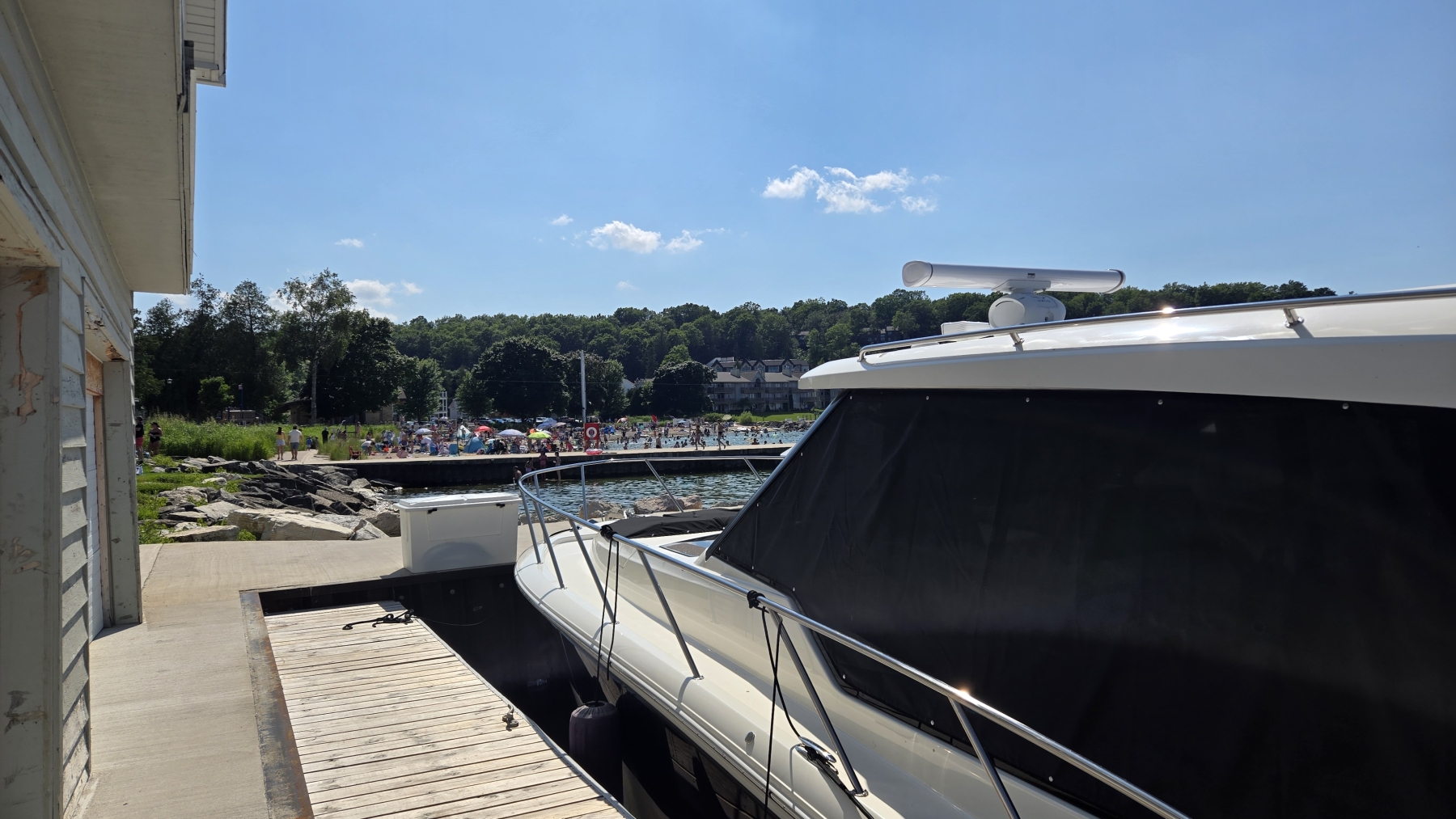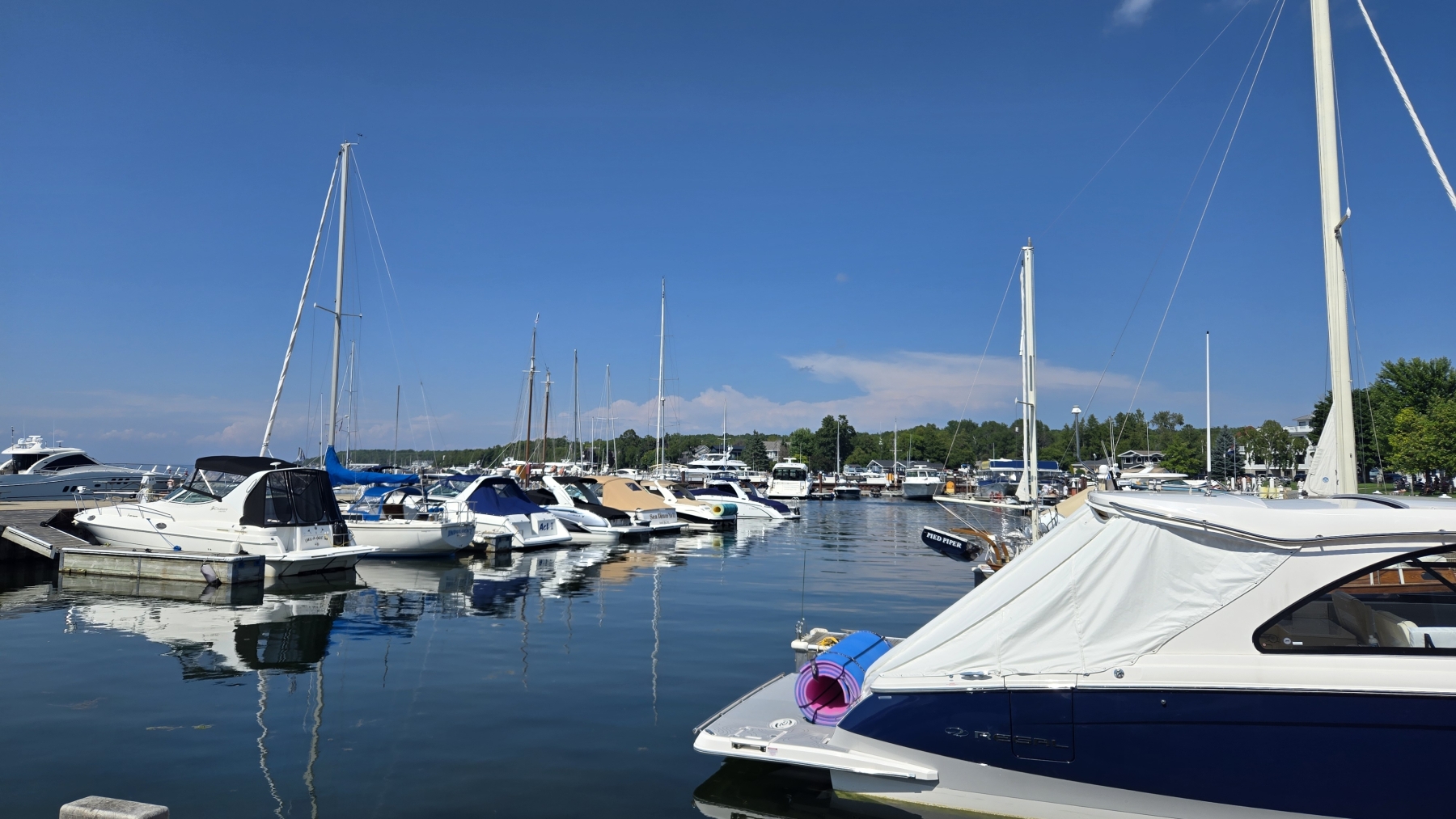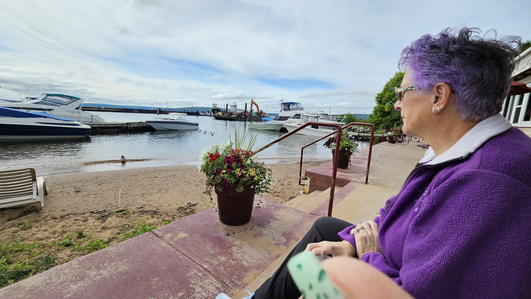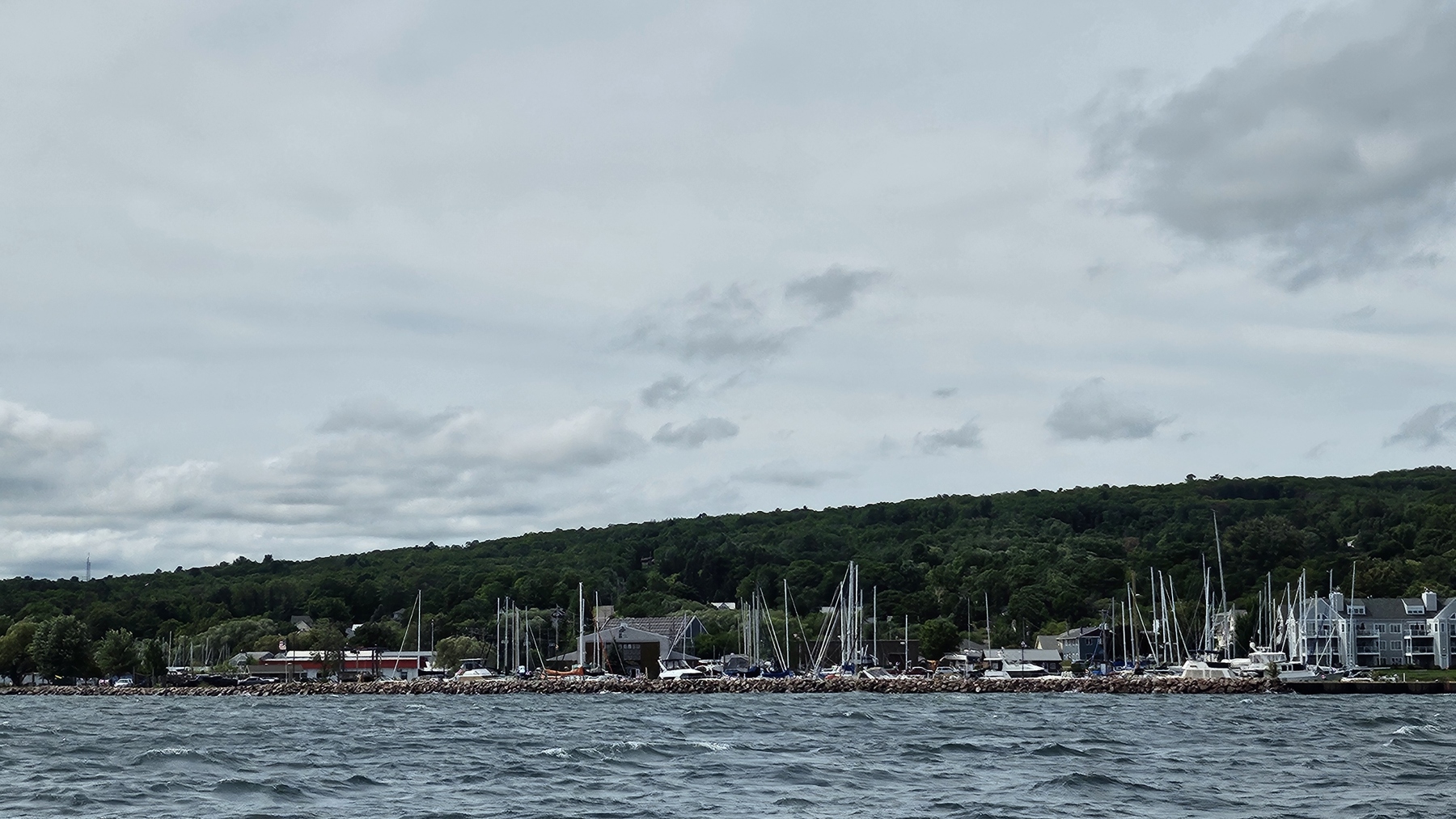 There are a few little towns along the county's peninsula, and we visited all of them. We mostly stayed on the Green Bay side. We had to visit Sister Bay and Al Johnson's Swedish Restaurant, of course. They have great food, and they have goats on their roof to keep the grass up there in check. We wandered around the marina across the street and marveled at how well Margot was healing. She wasn't back to normal yet, but it had only been five months since the incident.