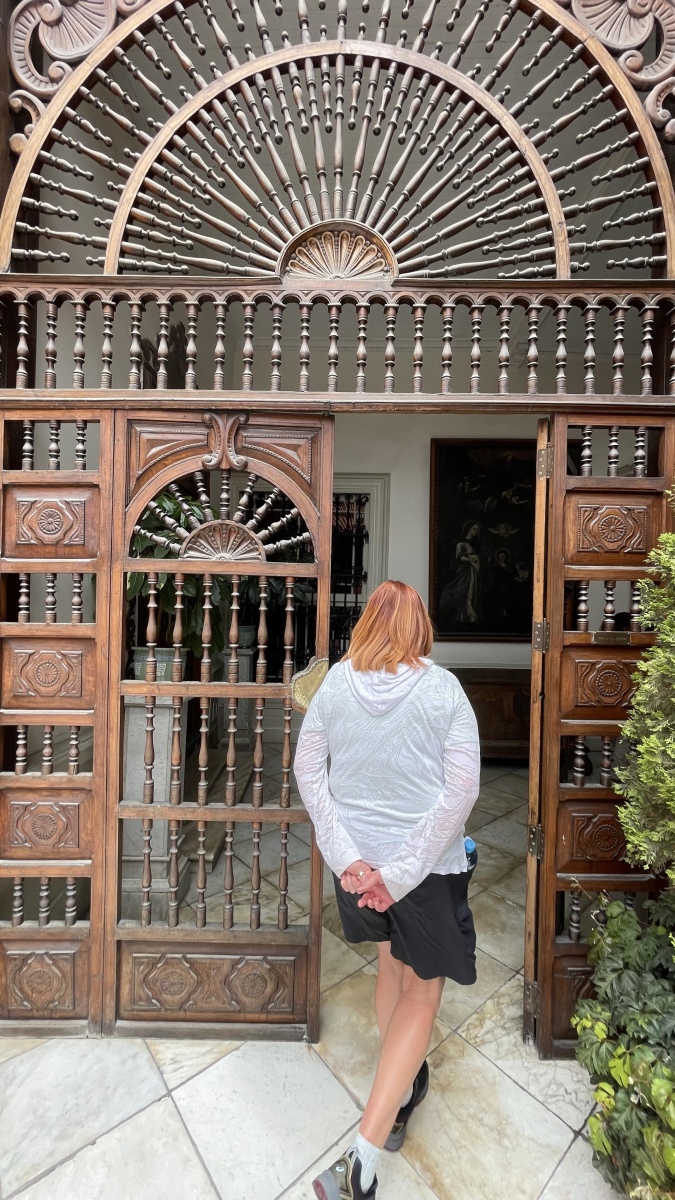 The next day, we went on a tour of Lima. We went to the Larco Museum, the Cathedral and Casa Aliaga, and the main square in the city. The architecture was so impressive. There was a gorgeous courtyard in the colonial mansion, and a cool, circular piece that had the signs of the zodiac on it. The museum had lots of pottery of erotic art and some very cool plants, all in another restored mansion.